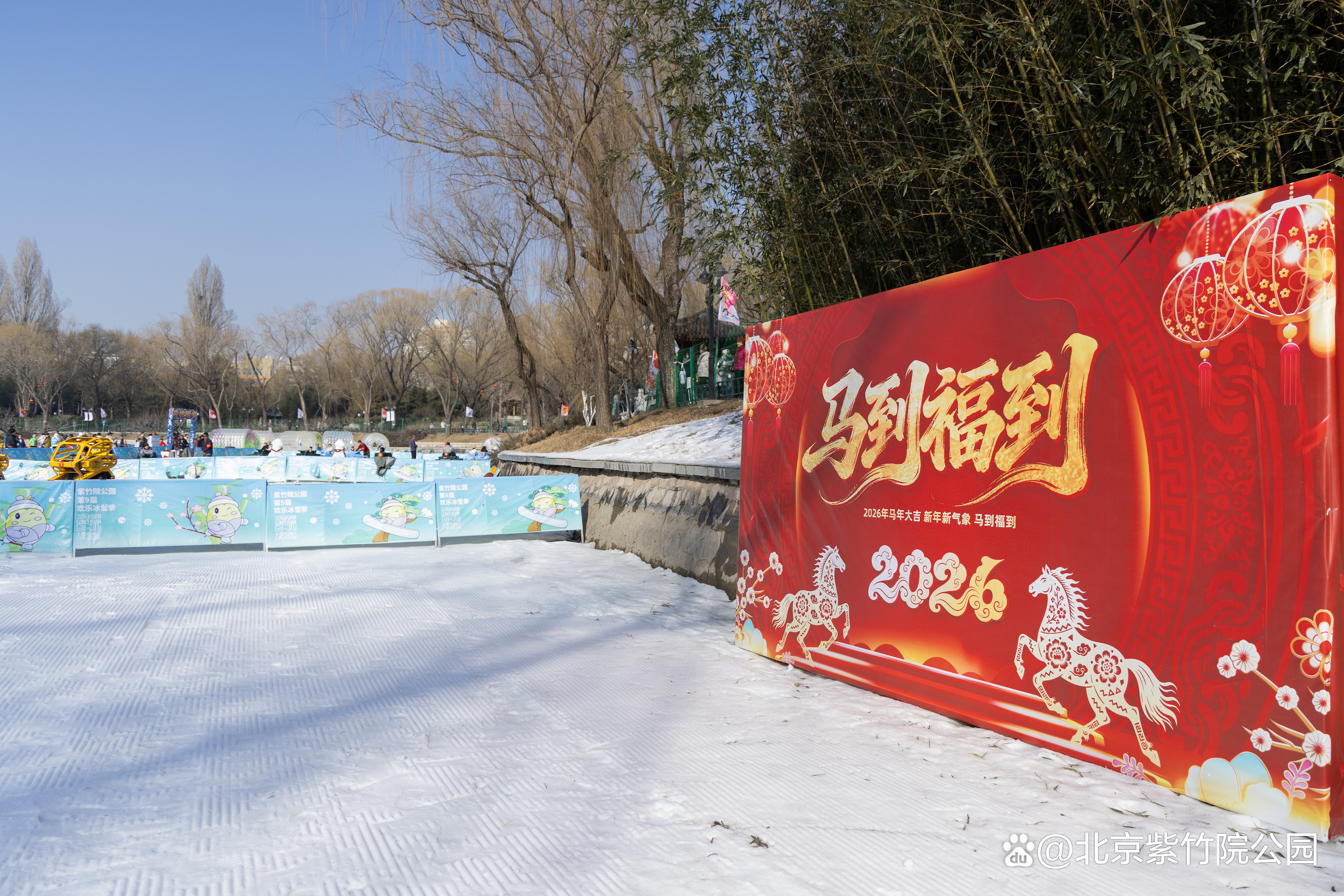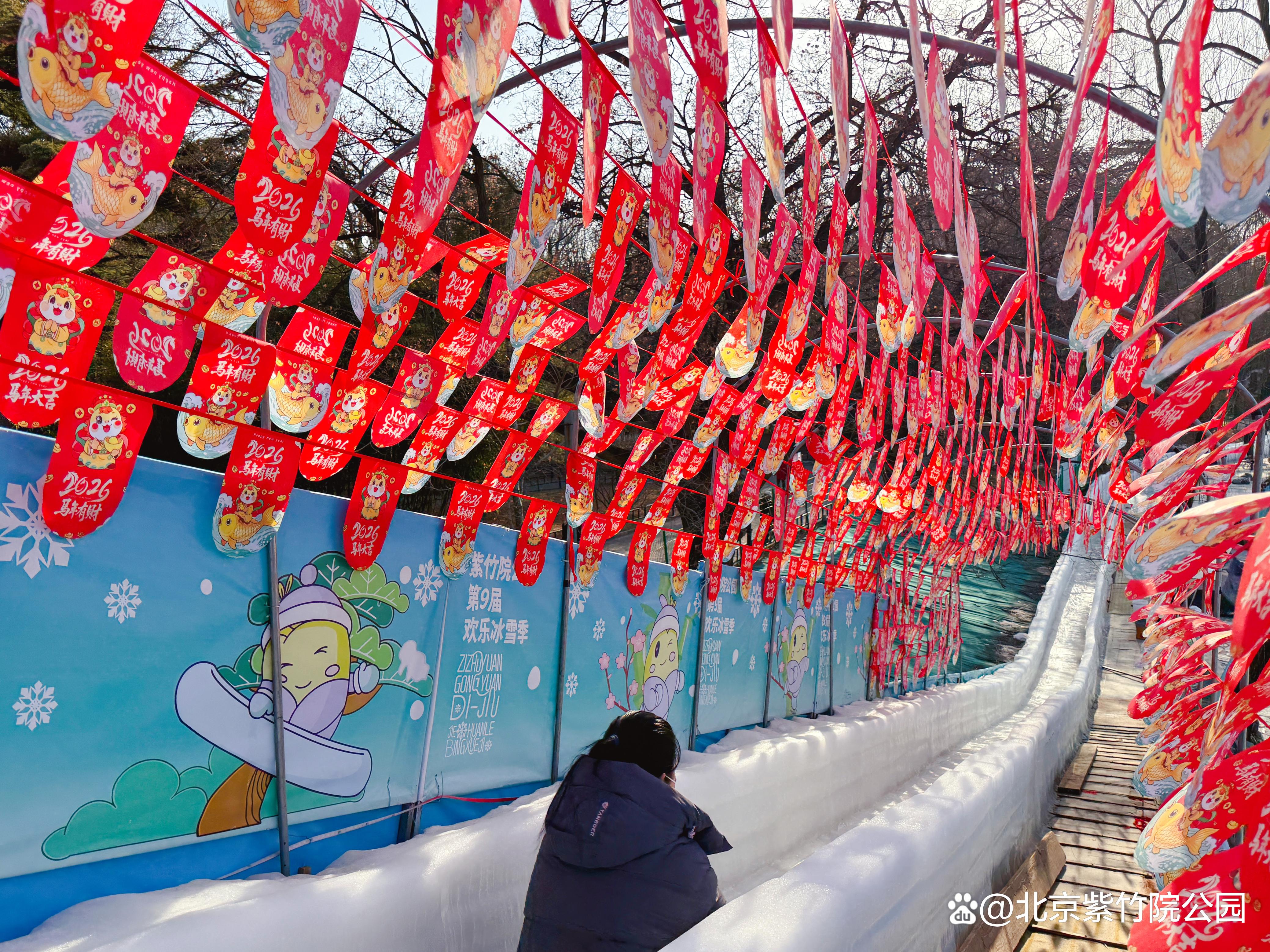 雪场内的中国结与红灯笼在白雪映衬下格外耀眼,“冰暖相融”四个字终于有了画面实感。还有雪场内春节展板也已就位,记录您和家人朋友最灿烂的笑容。