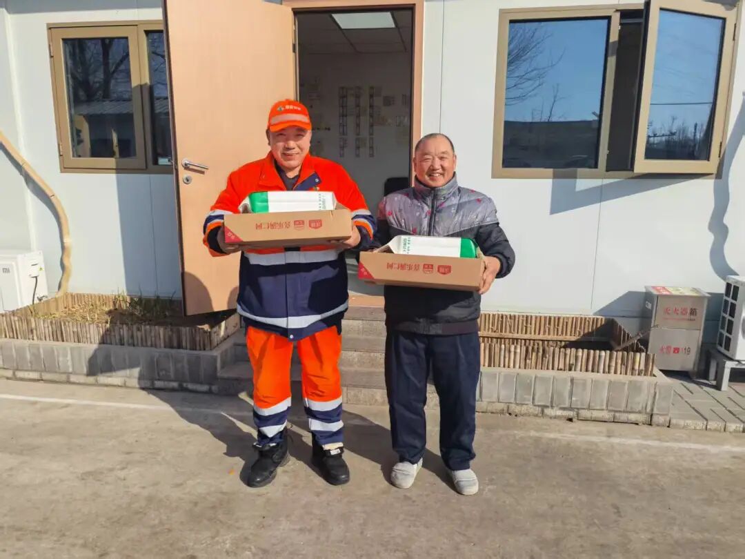 当市政集团海淀固废公司一线环卫工人赵素华和冯浩接到这份沉甸甸的年货礼盒时,脸上绽放出朴实的笑容。