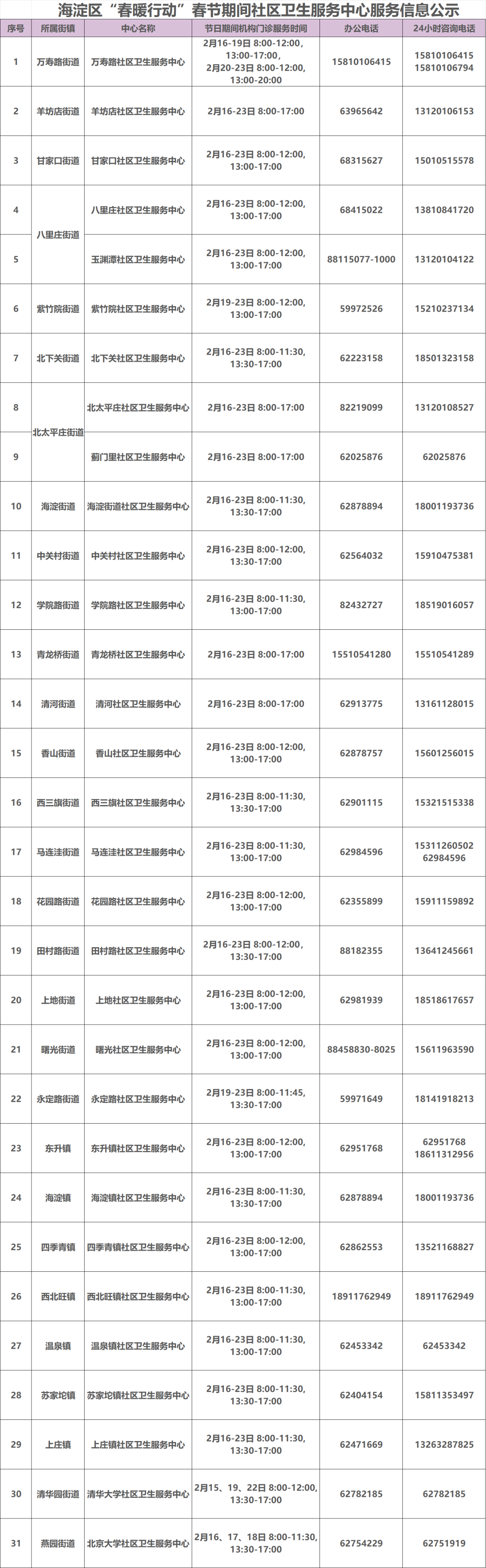 春节期间,海淀区全部街镇的社区卫生服务中心将对辖区养老机构入住老年人开展健康巡诊,提供细致的健康检查、慢病管理、用药指导和健康宣教,让机构里的老年群体健康有人管、过节更安心。针对空巢、独居、失能半失能等有上门医疗需求的居家老年人,社区卫生服务机构坚持应联尽联,由家庭医生团队主动对接、上门服务,让老年朋友足不出户,就能享受到便捷专业的医疗照护。