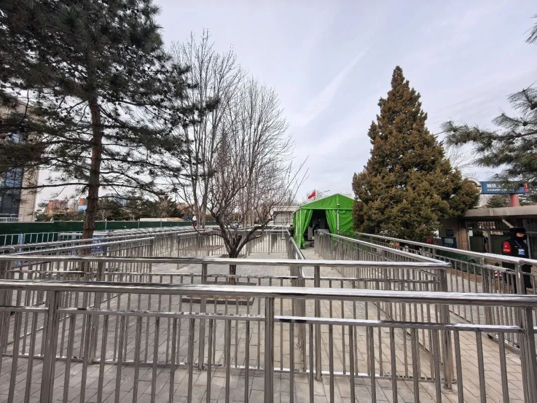 增设安检导流:针对折返站玉泉路站预测客流激增的情况,在D口外搭建安检大棚,新增2个安检点,同时启用固定及移动式围栏规范客流走向;早晚高峰时段增派工作人员及志愿者,全程开展客流引导、秩序维护和咨询服务,同步推行出入口“单进单出”运营模式,精准分流、提升通行效率。