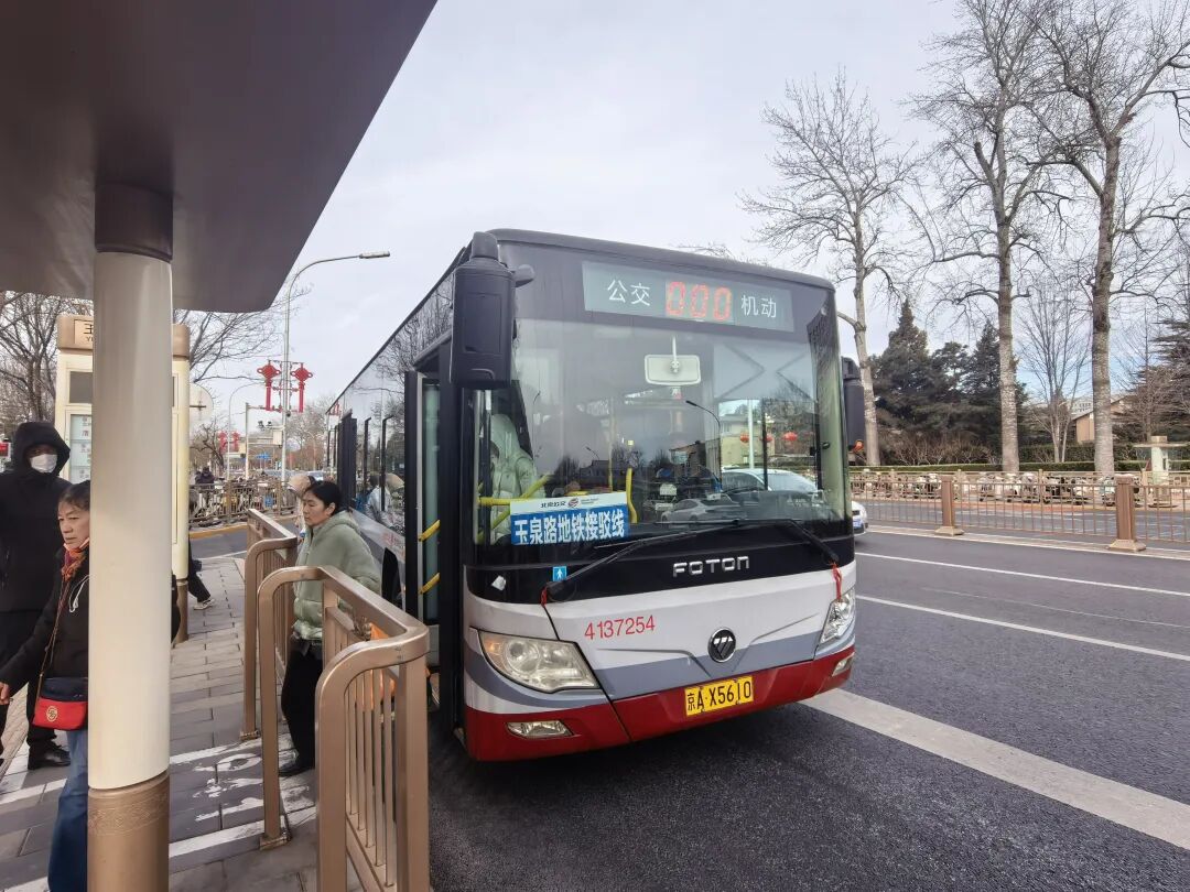 新开玉泉路地铁接驳临线。从玉泉路口西,沿地铁1号线走向向西,接续地铁运输。沿途共设站位6处,首钢试验厂、石景山古城、京燕饭店、京原路口东、地铁八宝山、玉泉路口西,覆盖首钢园、地铁古城站、石景山游乐园、地铁八角游乐园站、地铁八宝山站及地铁玉泉路站等重点区域和轨道站点,在临时封站停运期间,全力保障沿线市民快速接驳地铁1号线玉泉路站。营业时间:首钢试验厂5:30-23:20,玉泉路口西6:30-次日00:20。线路采取大中型车辆混配,根据客流安排高峰间隔,计划工作日高峰间隔3-4分钟,平峰根据沿线客流情况灵活配置运力。
