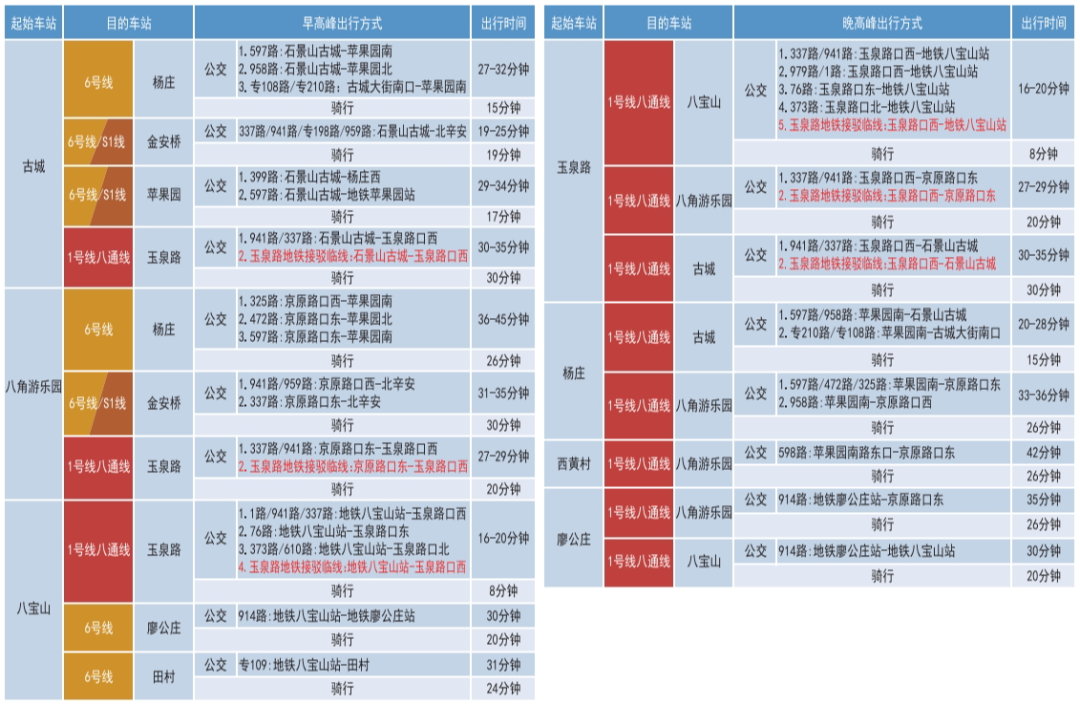 同时,为市民更方便的换乘公交,建议乘客在东向西出城方向,合理选择公交线路。去往八宝山、古城方向的乘客,除在玉泉路换乘接驳临线外,也可在万寿路站、五棵松站换乘337路;去往八宝山及以南(鲁谷、焦家坟、吴庄等小区)的乘客可在万寿路站、五棵松站换乘76路;去往八宝山、老山公交场站的乘客也可在万寿路站、五棵松站换乘1路。