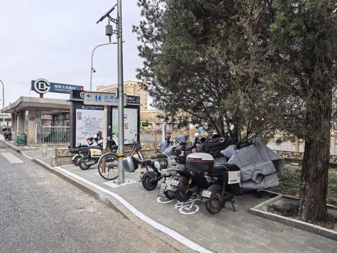 地铁封站停运后,1号线玉泉路站、6号线杨庄站非机动车停放需求将显著增加。为缓解这一问题,石景山区在1号线玉泉路站采取三项措施新增非机动车停放空间:一是在石景山路沿线人行步道复划、施划非机动车停放区;二是利用玉泉路站D1口外绿地边缘、桥下空间,挖潜拓展非机动车停放空间;三是临时占用国际雕塑公园东园北门外广场,挖潜拓展非机动车停放空间。三项措施预计可增加约2800个非机动车停车位。同时,在6号线杨庄站C2口外结合现状绿化带边角地,挖潜拓展非机动车停放空间,预计可增加约200个非机动车停车位。