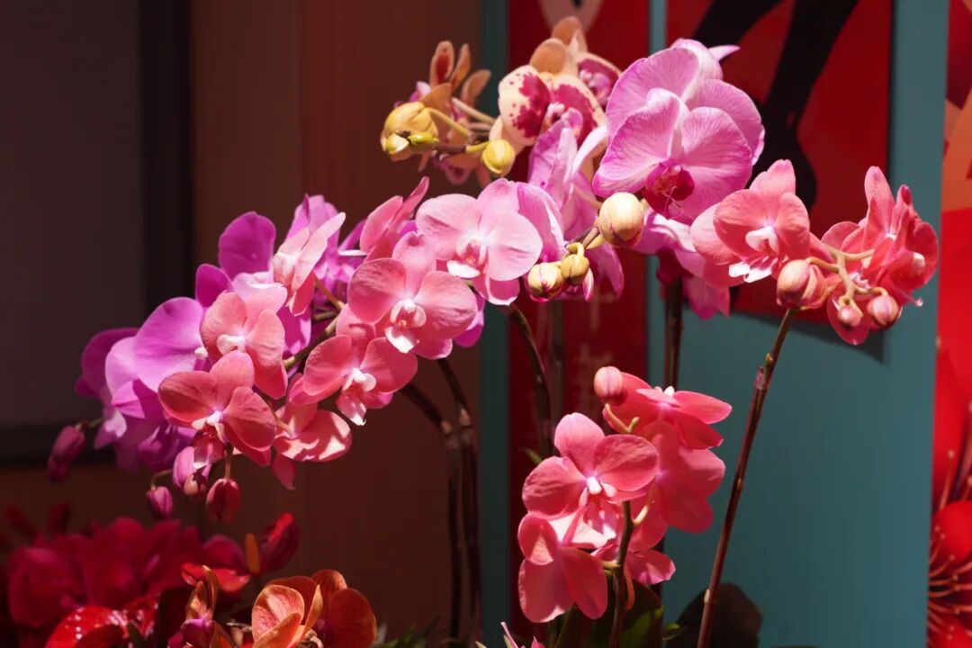 本次展览巧妙融合传统年俗与花卉艺术,通过精心设计的展陈布局,在有限空间内构建了一个充满年味儿的沉浸式游园天地。展厅内,亭亭玉立的水仙散发清雅芬芳,寓意“花开富贵”;姿态各异的艺术插花组合成“马到成功”“龙马精神”等主题景观,用植物语言讲述吉祥故事;蝴蝶兰、大花蕙兰、仙客来等色彩明丽的年宵花卉汇聚成一片锦绣,每簇花枝间仿佛都挂着美好的新春祝语。