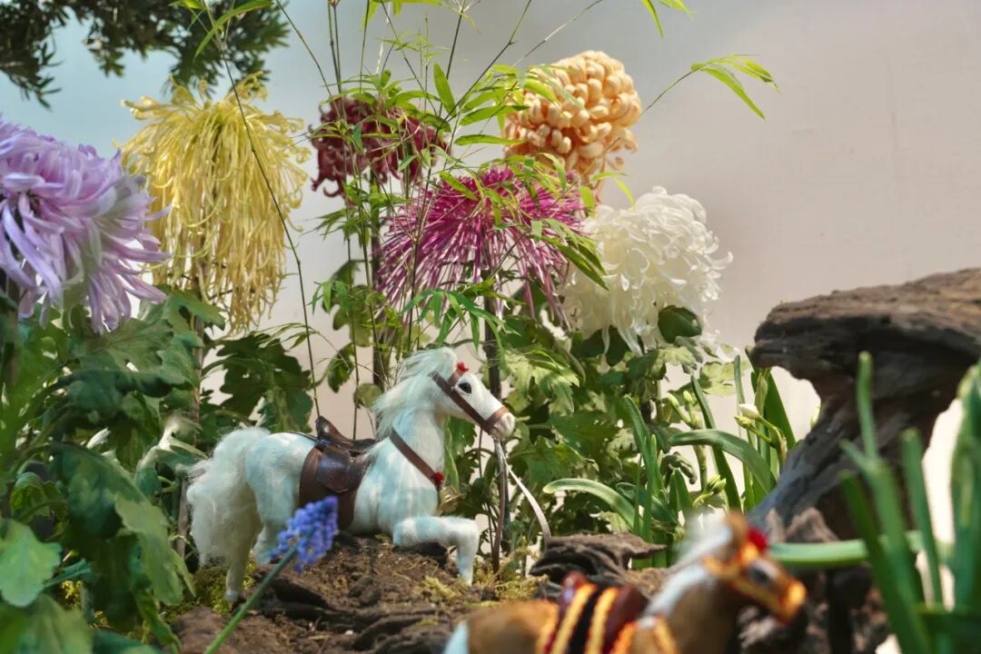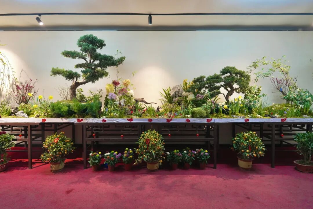 本展览于2月17日-2月21日在阐福寺后院展室进行展览。展览在阐福寺东西两展室呈现不同风格:西展室采用“游历式”布展,整间展室如长卷铺陈,通过雕刻水仙与插花作品串联起连续的画面故事;东展室则打造为可赏可玩的马年新春游园会,年宵花卉与吉祥祝福巧妙结合,互动感十足,营造出鲜活、欢乐的中国年氛围。