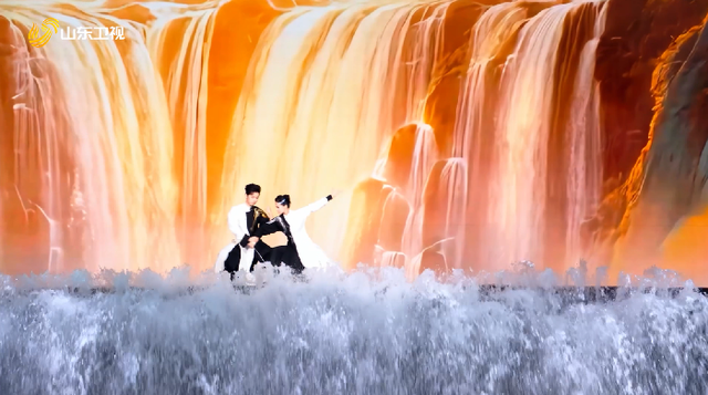 武术节目《乾坤和韵》由沅芷、纪豪携手莱州中华武校的武者们惊艳呈现。两人的动作与水舞台的波光完美呼应,每一次转身都带起水雾氤氲,每一次推手都似与自然共振,仅以肢体语言传递太极“以柔克刚、动静相宜”的深邃内涵。同时,更让观众眼前一亮的是,整个舞台设计可谓营造出了“人在景中,景随人动”的空灵意境,背景中倾泻而下的“瀑布”宛如天然画卷,光影流转间让沅芷与纪豪如同置身于飞瀑流泉中演绎太极,营造出一种天地人和的宏大意境,让观众在震撼的视觉体验中,领略太极文化的独特魅力与齐鲁大地的人文底蕴。