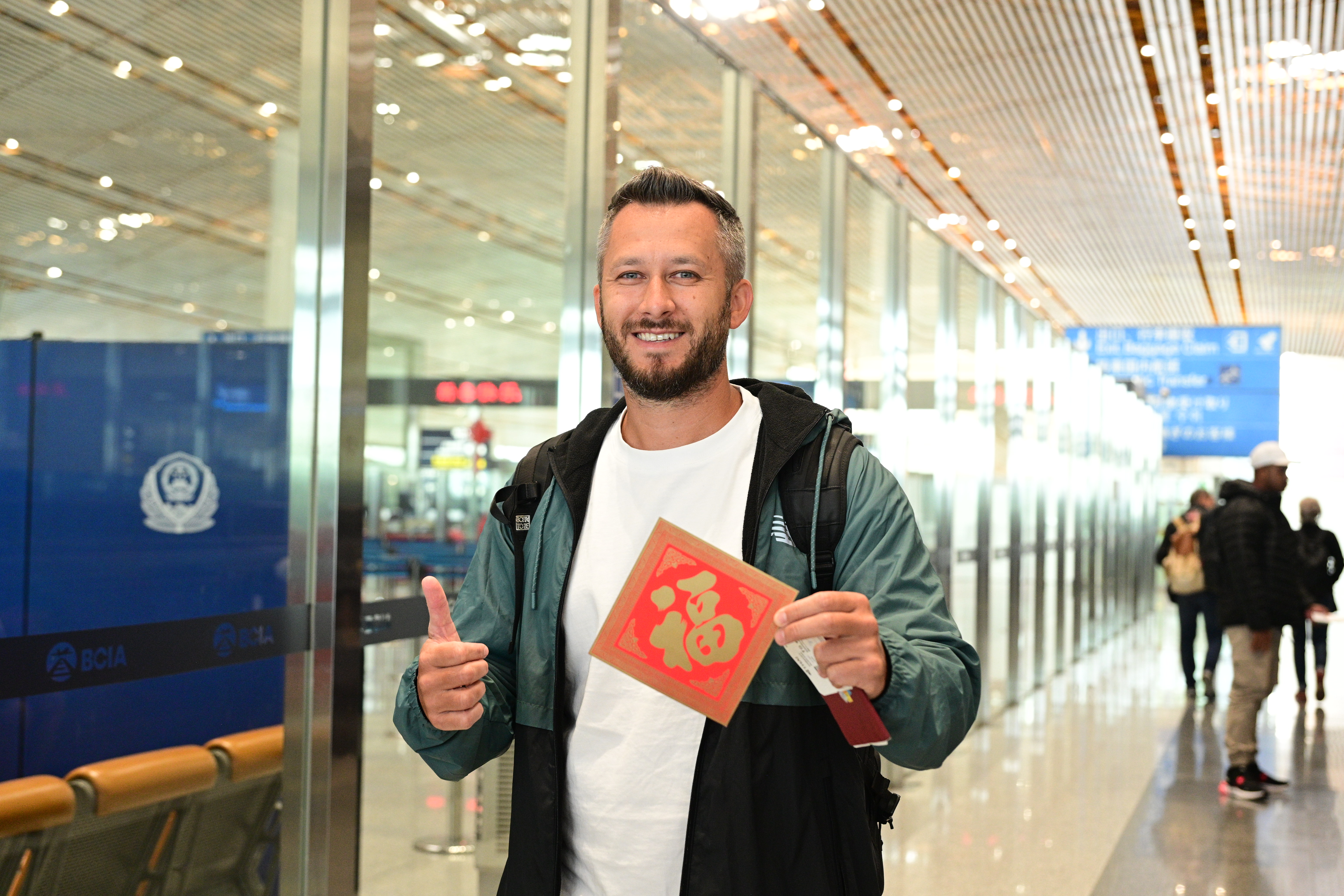 北京边检总站执勤二大队队长李炳利介绍,春节期间,还将持续开展暖心送福活动,用细节服务传递新春善意。“我们希望通过送福字、教吉祥话这样的小举动,让外国游客一入境就感受到中国春节的热情和北京的温度。”