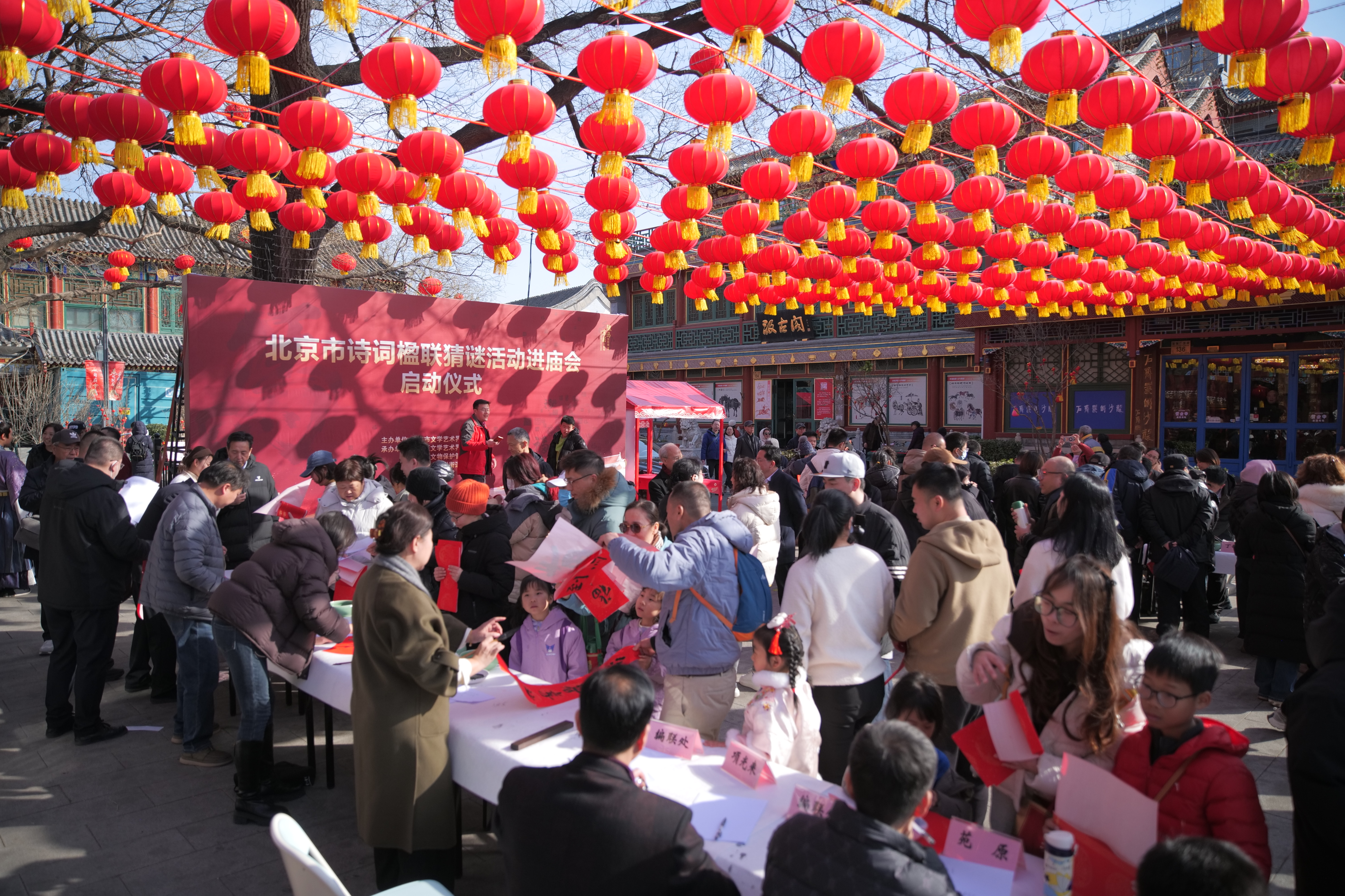 2月14日,“骏马贺新春 京彩中国年——诗词楹联猜谜进庙会”活动在西城区厂甸庙会启动。有奖对诗词楹联、谜语竞猜、定制春联等丰富多彩的趣味活动,引发来自全国各地游客和市民热情参与和广泛点赞。活动现场,既有书法家挥毫送福、题写春联,也有有奖对句猜谜、诗词楹联知识微讲堂等趣味活动,让文化传承从“看得到”变成“摸得着、玩得乐”。