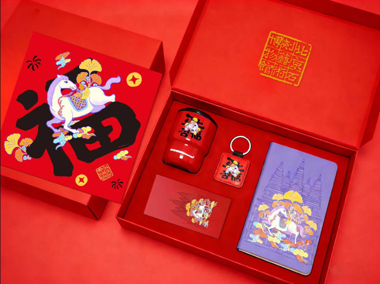 馆内还上新了“马上‘杏’福”系列新春文创,从门贴、红包到专属马年纪念牌,把金石上的福韵带回家。
