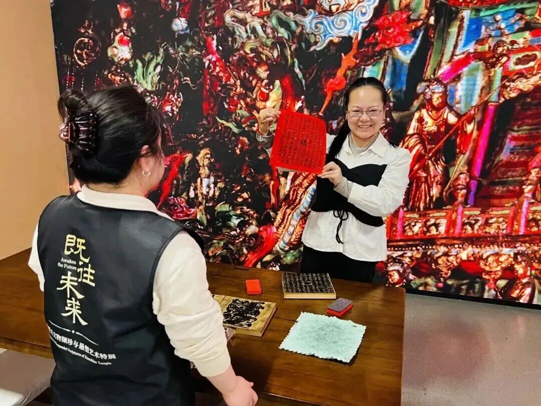玩法:春节假期展览文创区特别准备了寓意吉祥的门神与福字雕版,您可亲手用红纸拓印出威风凛凛的门神与别有韵味的福字板画。仅需19.9元即可体验一场跨越数百年的匠心对话,带走一份独一无二、热气腾腾的年味。