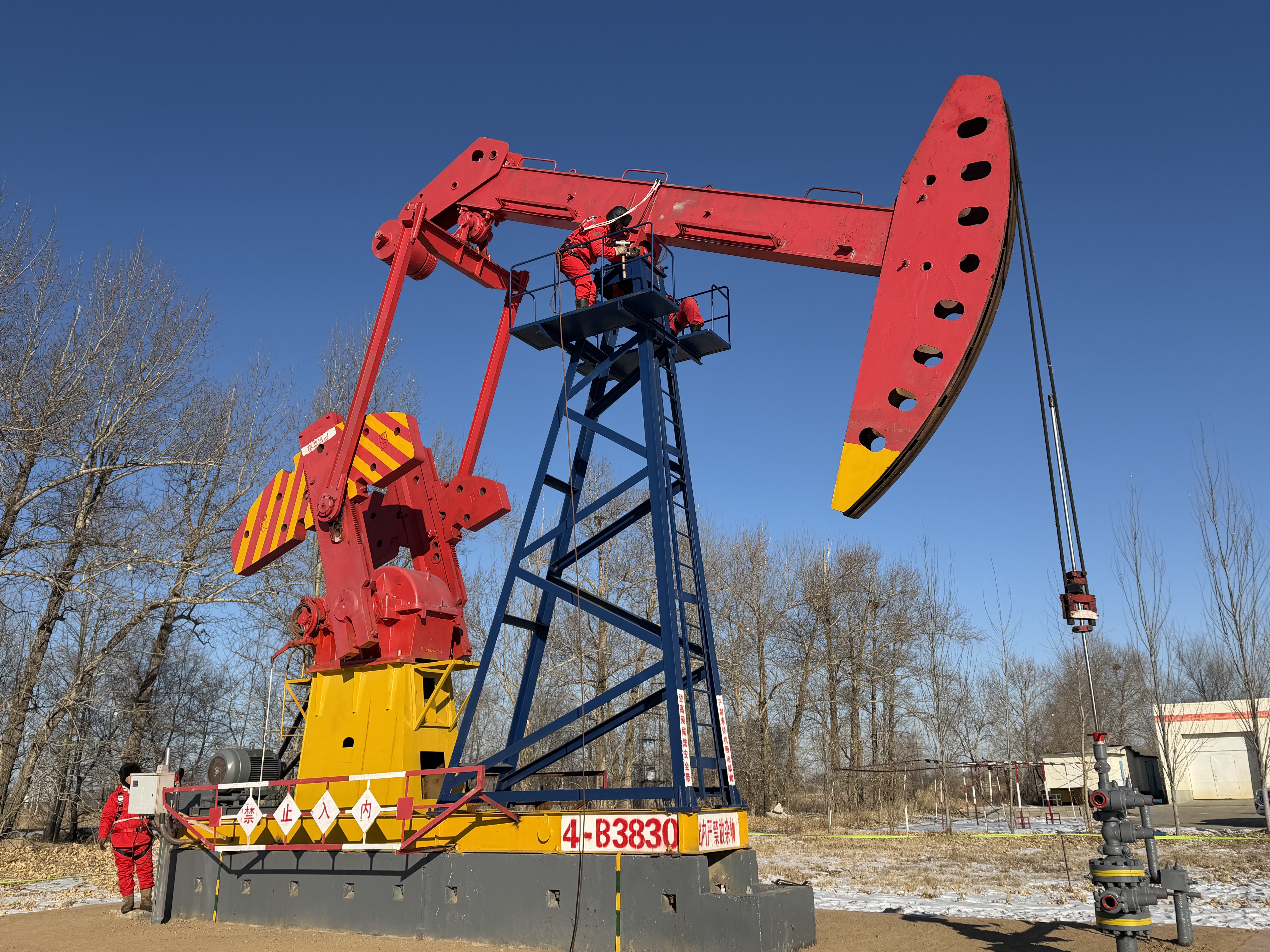 在大庆油田第六采油厂第六作业区,一台台抽油机迎着寒风不停运转,将地下原油源源不断地抽至地面。奋战在能源保供一线的石油工人,顶严寒、斗风雪,守护着“能源动脉”。