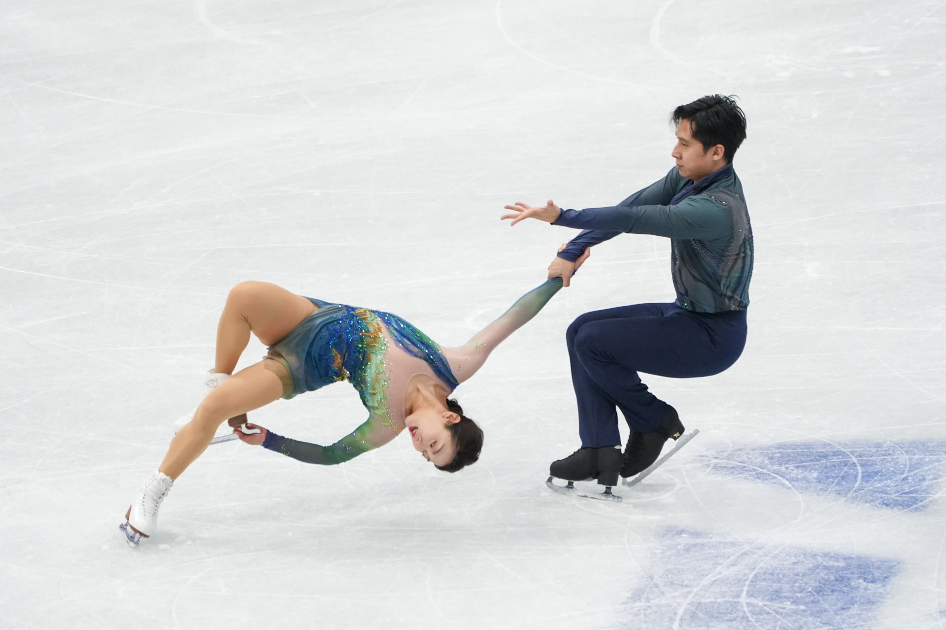 隋文静/韩聪的《只此青绿》音乐选自同名舞蹈诗剧,运用了大量民族乐器演奏,服装造型的设计灵感则来自于《千里江山图》。节目由隋文静亲自参与编舞,将中国传统文化元素植入花滑编排,不仅美轮美奂,且极富民族特色。