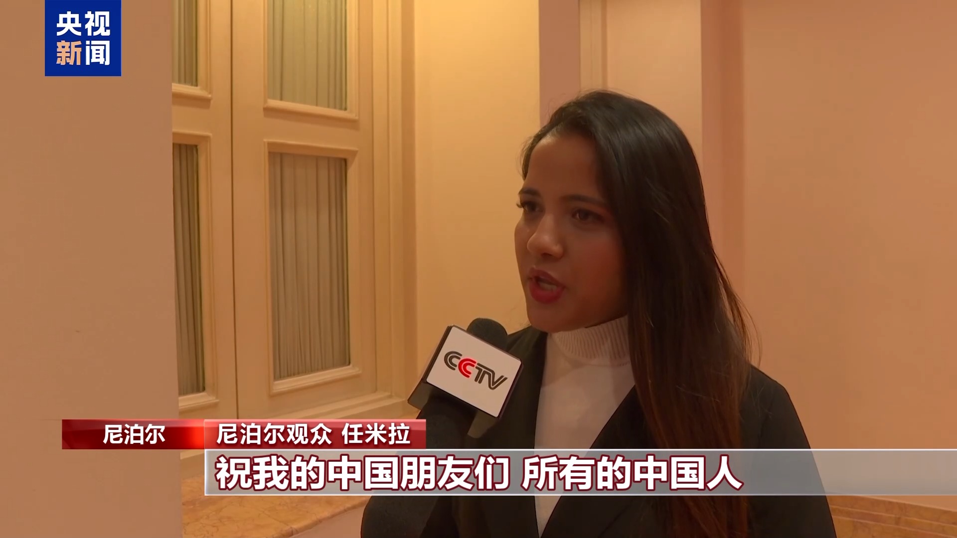尼泊尔观众 任米拉:祝我的中国朋友们、所有的中国人,新春快乐、身体健康、 万事如意、马到成功。