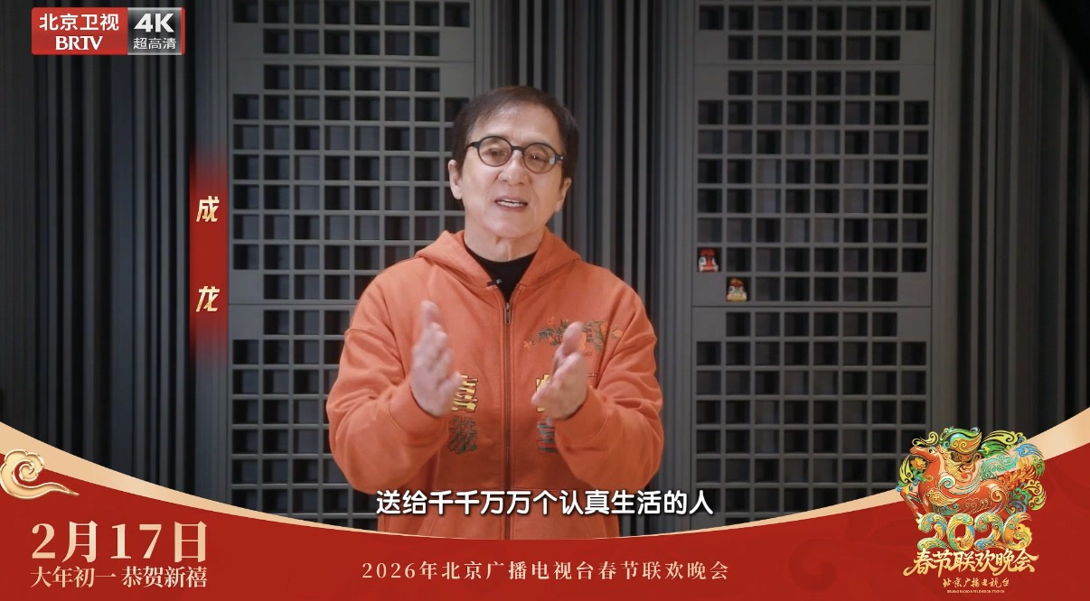 这份温暖的心意,也因老友相伴更添温情。成龙特意拨通周华健、王力宏、谢霆锋、张杰的电话,邀挚友并肩合唱,让走心的歌词伴着动听的旋律,将对自我的肯定、对生活的敬意,揉进老友间的默契和声里,温柔叩击心底。这声“恭喜自己”,是成龙半生拼搏后的人生感悟,是对每个普通人的温柔致意,更以歌声的暖意,轻轻慰藉着每一个用力生活的心灵。2026年北京广播电视台春节联欢晚会,将于明晚19:30在北京卫视、北京文艺频道、北京时间客户端等平台同步播出,愿我们都能在这温柔旋律里与自己相拥,带着这份笃定与暖意,在马年新春学会爱己,从容前行,奔赴属于自己的崭新旅程。