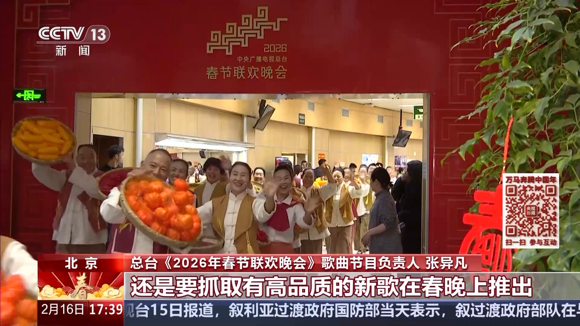 总台《2026年春节联欢晚会》音乐总监 洪兵:提倡“开门办春晚”“人民的春晚”,增加了很多更接地气的歌曲。尽量能够反映出来百姓的生活,反映出来人民这一年的心声。有一首非常感人的亲情歌曲,看到歌词的时候,我们就非常喜欢。它有很强的代入感,也有很广的普遍性,大家都会有这种共鸣。