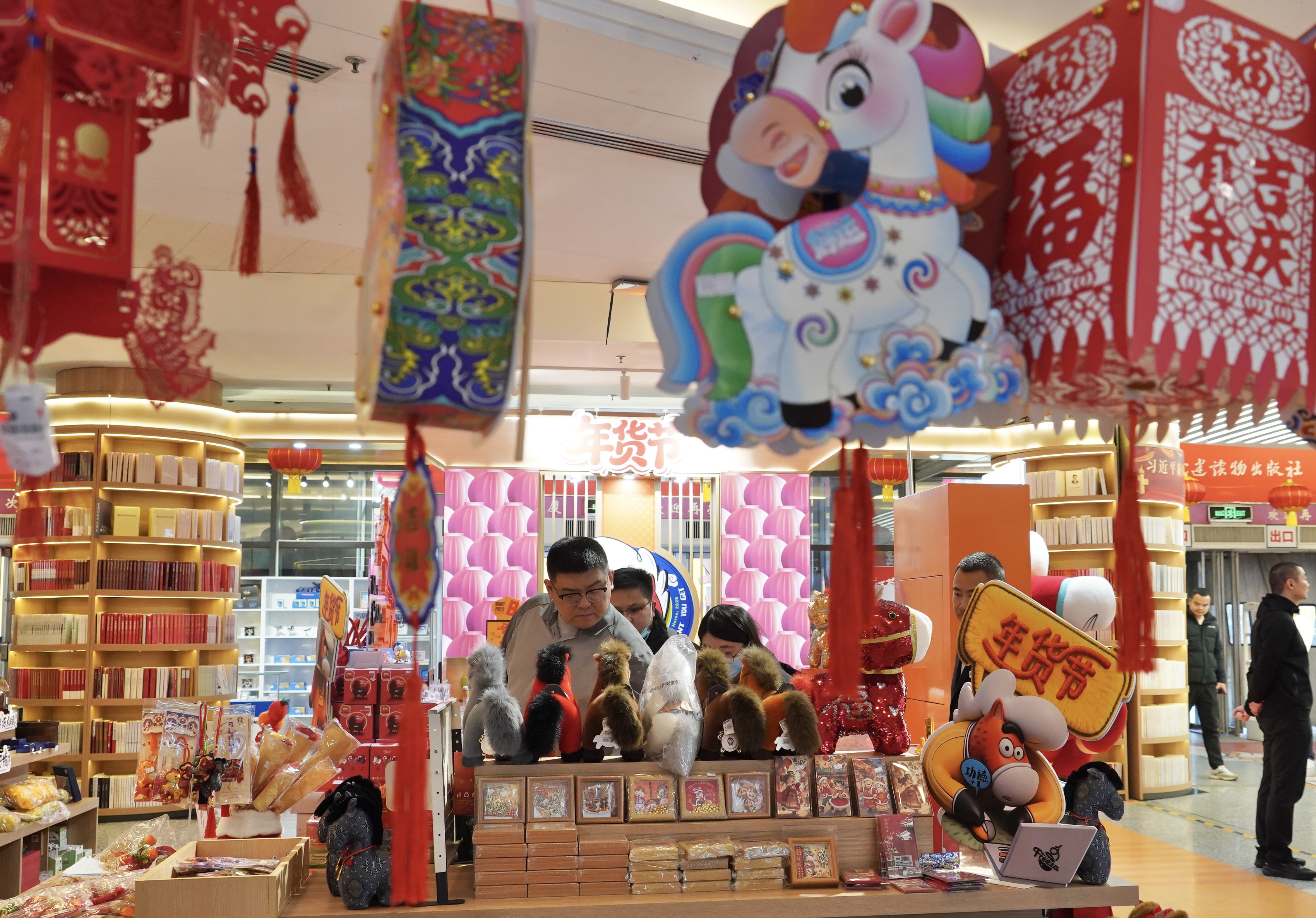 除夕夜看春晚、吃饺子、参与互动游戏,已成为北京图书大厦的美好传统。北京图书大厦副总经理徐申告诉记者,去年10月起,团队便开始筹划这场文化年夜饭。“今年我们首次与独立设计师合作,联名推出一系列马年文创,希望用更有趣的方式,贴近年轻读者。”