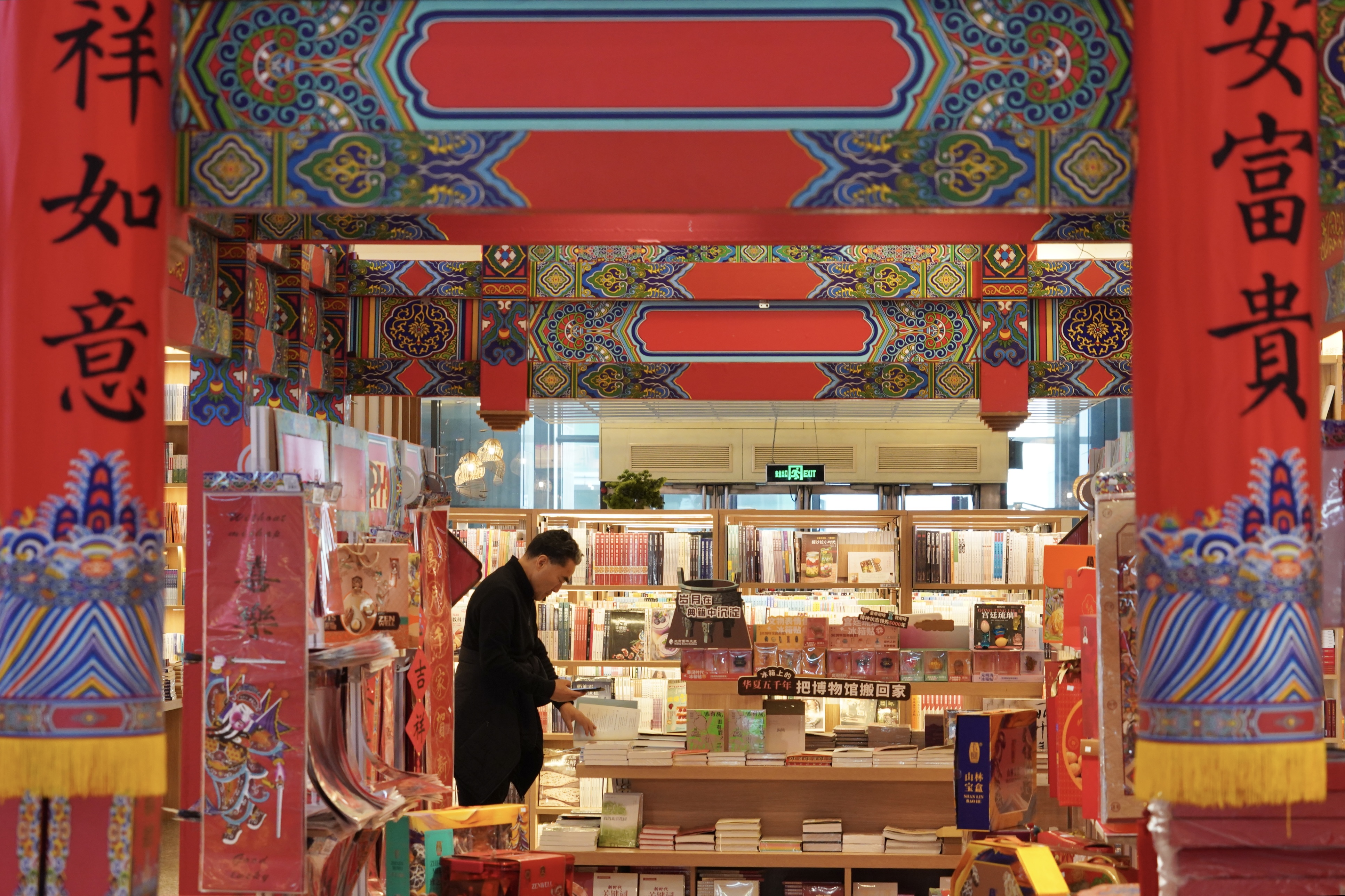 红彤彤的灯笼缀满楼层,新潮马年元素点亮全场,精品新书好书整齐陈列,春联福字、特色年货琳琅满目,潮流文创礼品兼具质感与新意,“马上!马上!”趣味打卡互动活动精彩纷呈……2月16日除夕夜,首文科旗下北京发行集团北京图书大厦笼罩在一派喜庆祥和的氛围中,市民读者踏夜色而来,在这书香的浸润里,度过一个别具韵味的文化除夕。