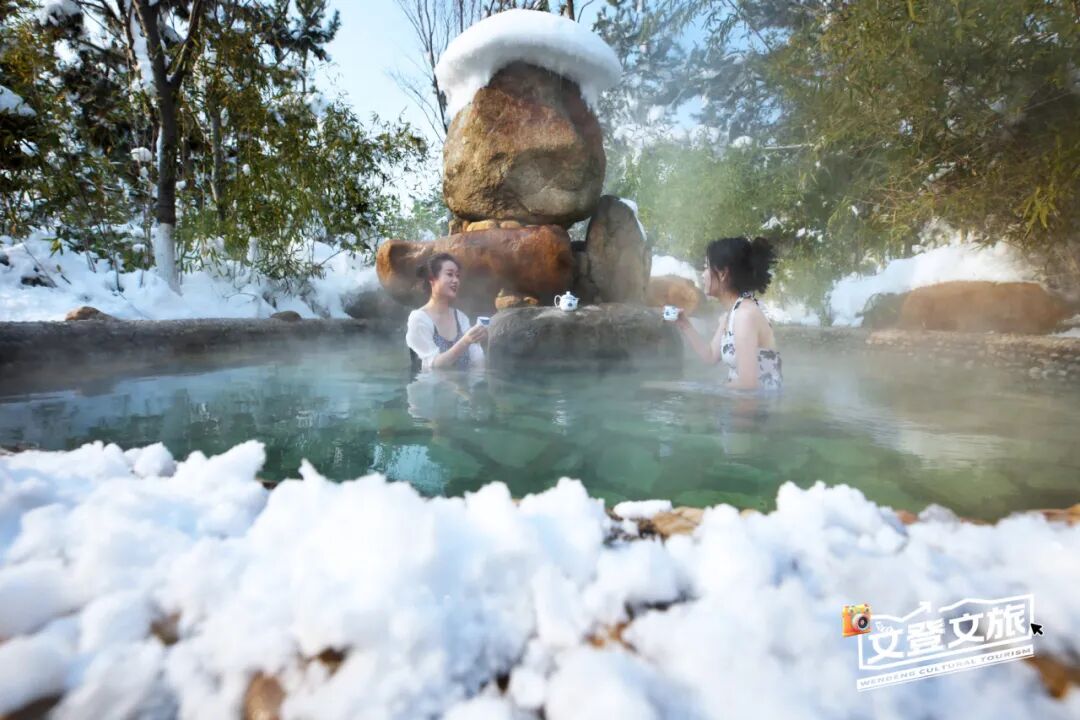 你可以在天沐温泉的66个特色泡池中择一而入,享受雪中泡汤、“森系”养生的快活;可以打卡秦始皇同款康养,体验被称为“泉中极品”的汤泊温泉;还可以躲进慈口观温泉民宿的小院,任百年老汤涤尘安神,享受“一院一汤池”的私密安宁。