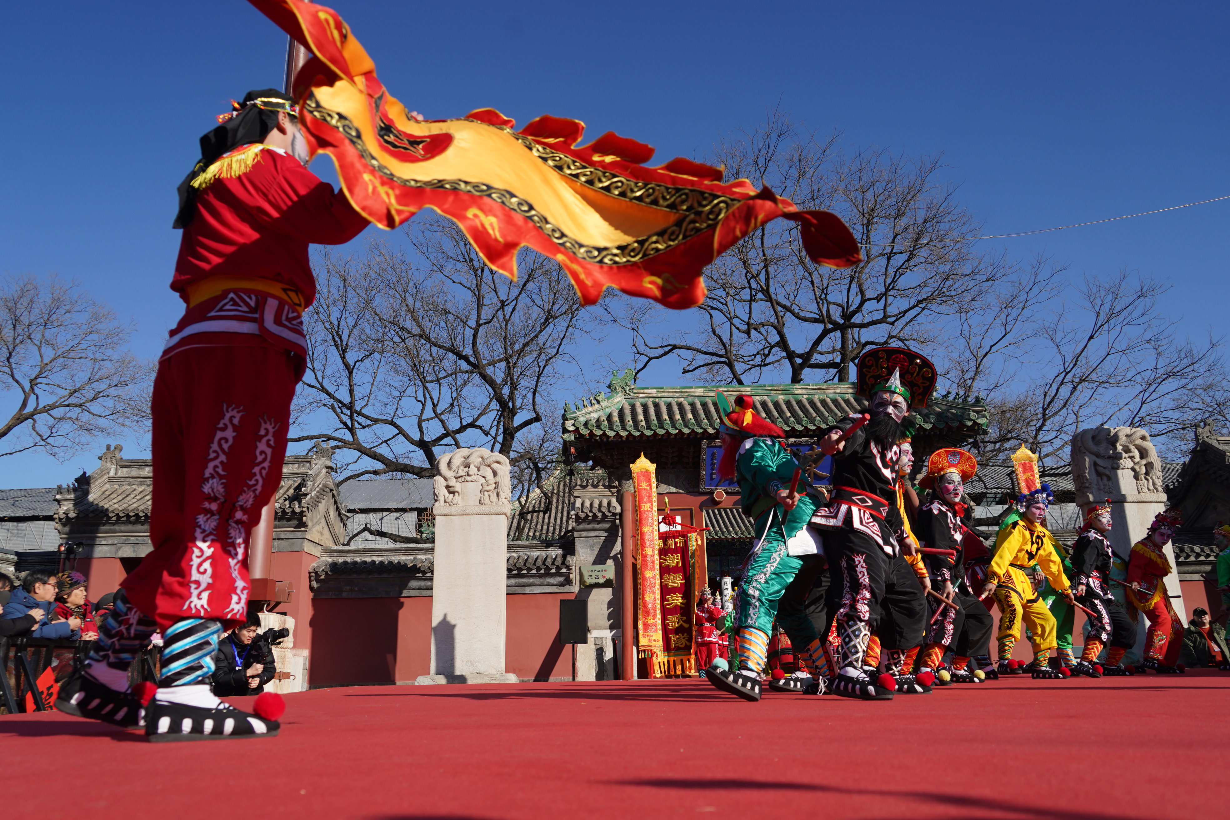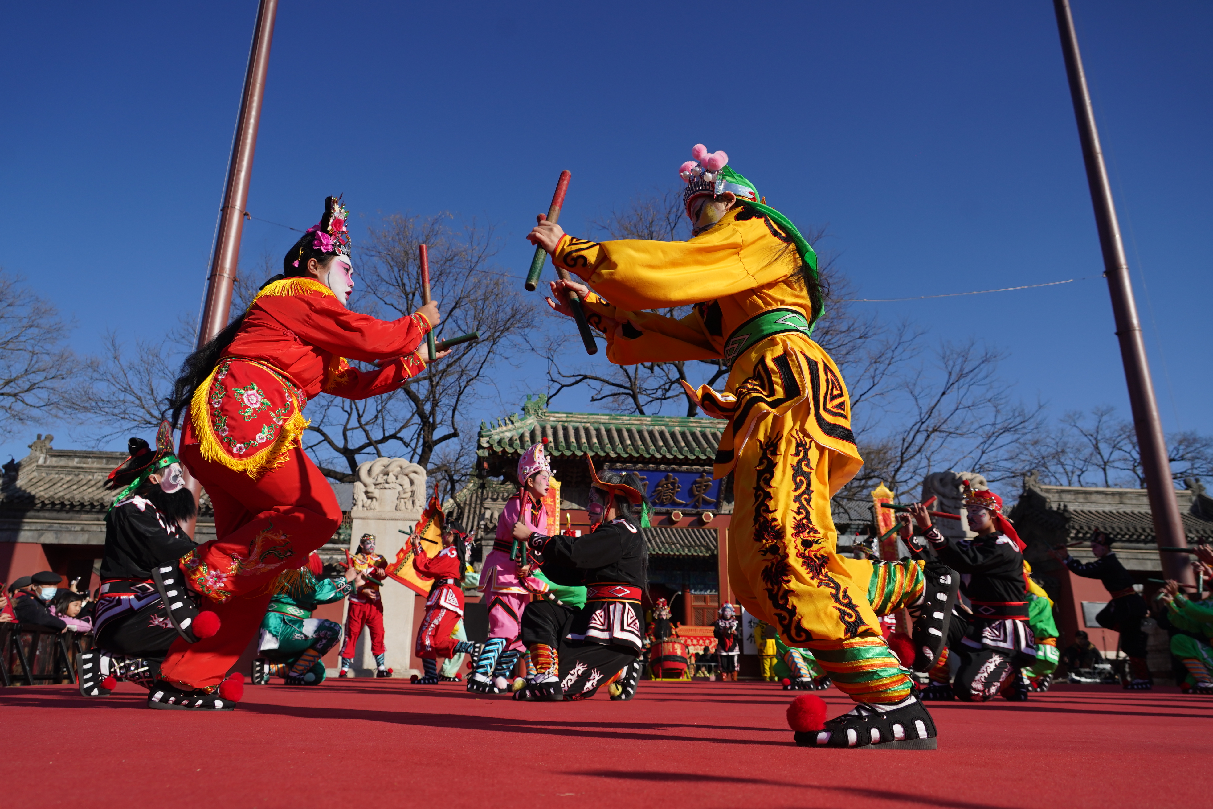 2月17日(农历正月初一),国家级非遗广东潮響鼓社潮汕英歌舞亮相北京东岳庙与北顶娘娘庙,与幡鼓齐动十三档、朝阳区东坝乡非遗金玲祖师及徐水舞狮等北方经典花会表演、内蒙古马头琴、川剧变脸等南北民俗技艺在2026朝阳区双庙庙会轮番登场,尽显非遗活态魅力。