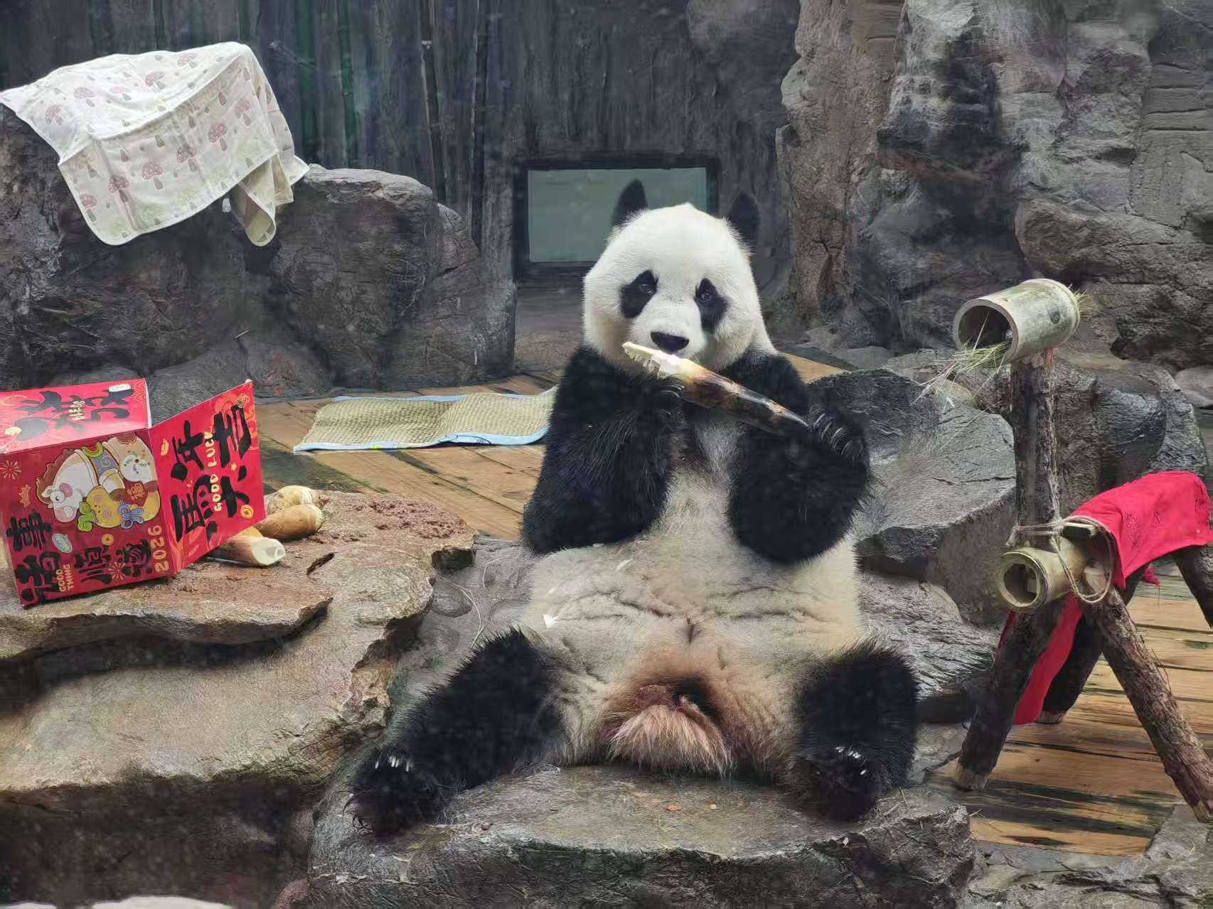 新春吃饺子是刻在国人骨子里的年俗,动物园的动物朋友们也迎来专属 “新春家宴”。大熊猫馆的饲养员们精心制作“定制窝窝头饺子”,让国宝也感受过年的氛围;朱鹮基地里,饲养员用肉馅为朱鹮包了一顿丰盛的“肉饺子”;长颈鹿馆的饲养员将苹果香蕉用桑叶包裹,做成营养美味的“桑叶福袋”;猩猩馆里,柚子壳做成的特色水果拼盘既好看又好吃。这些应景美食,不仅为动物带来了丰容食物,更让萌宠们也融入了大年初一的喜庆氛围。