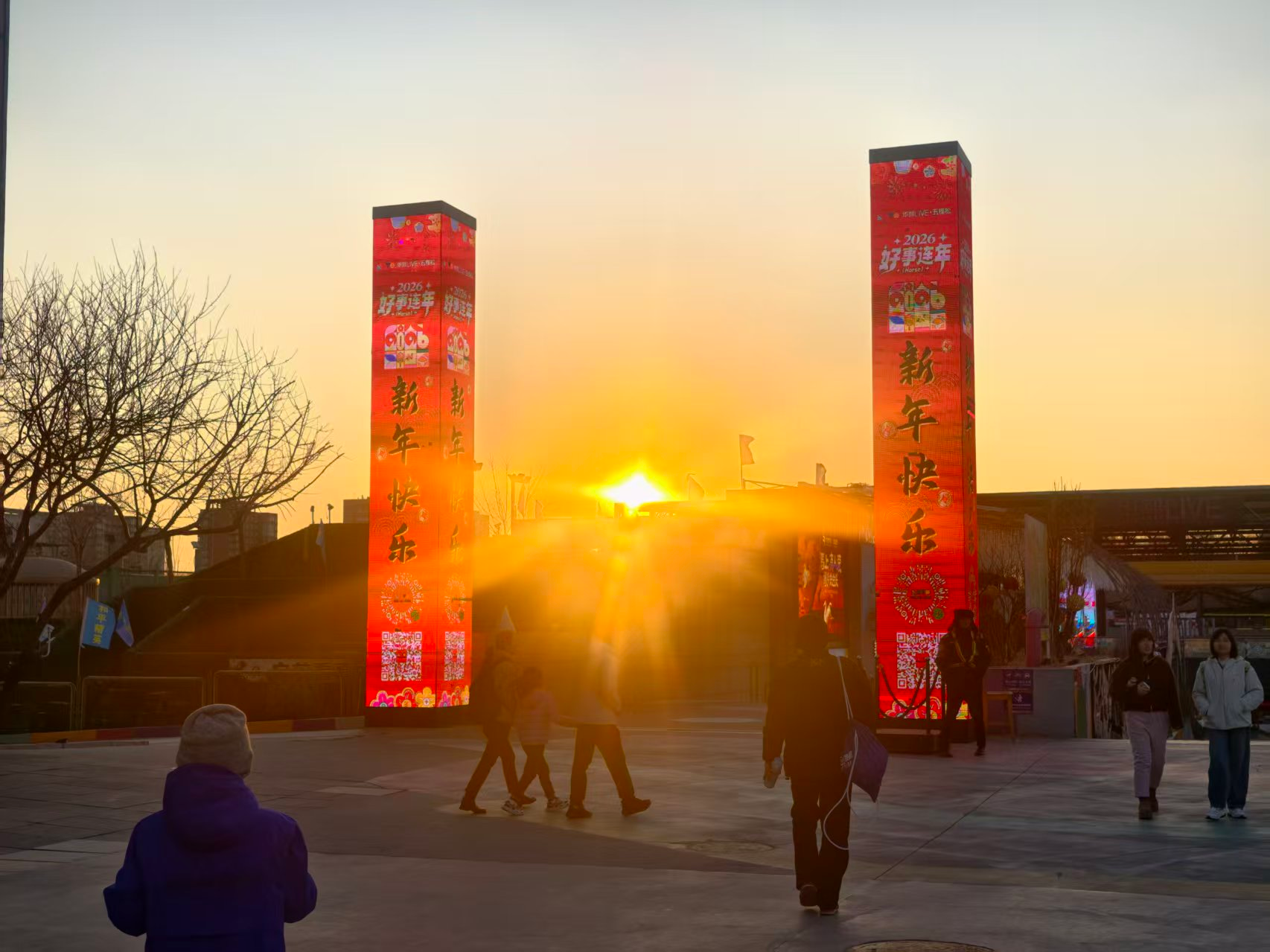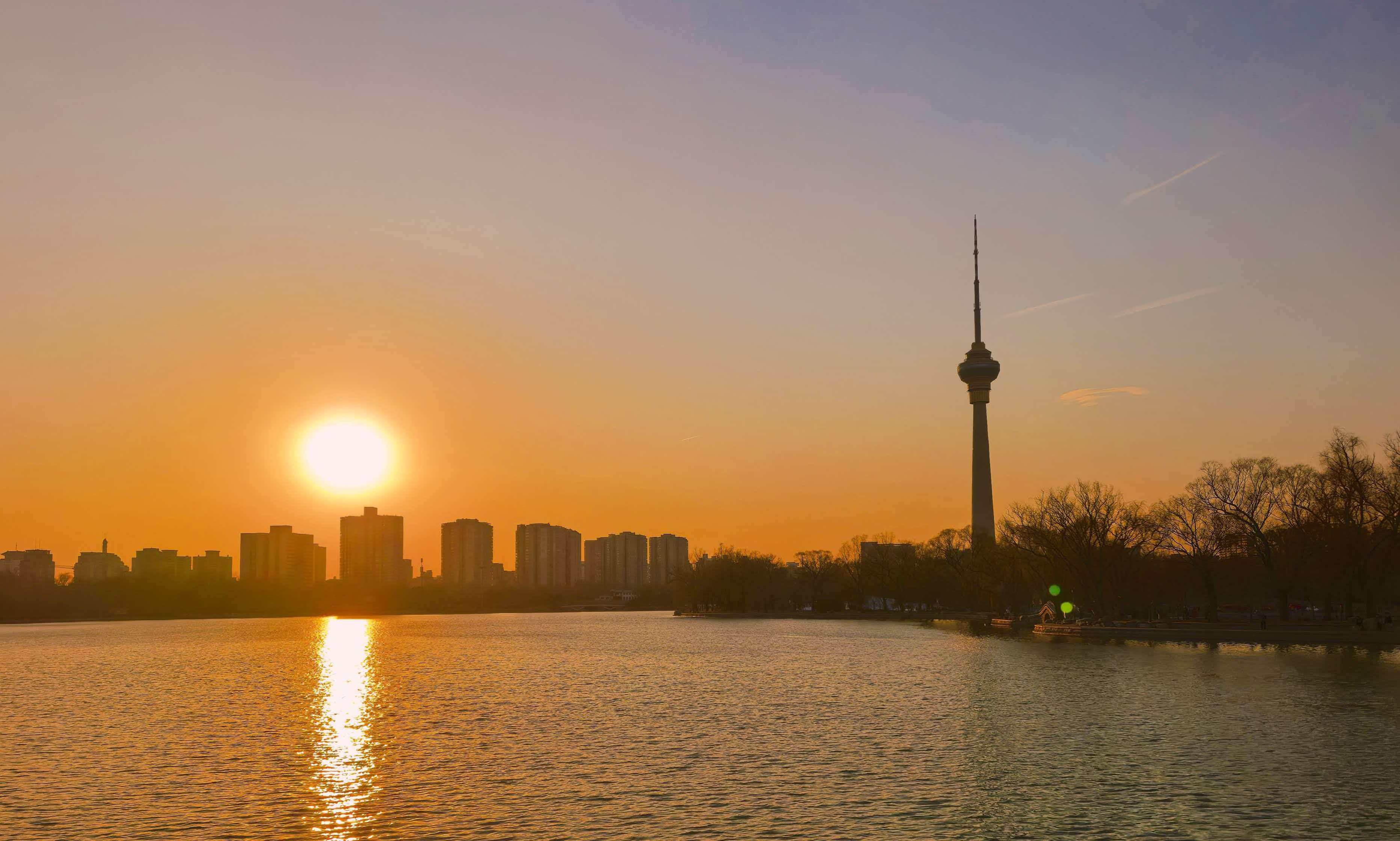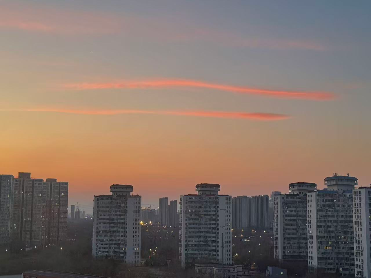 大年初一,北京天空出现玫瑰金日落