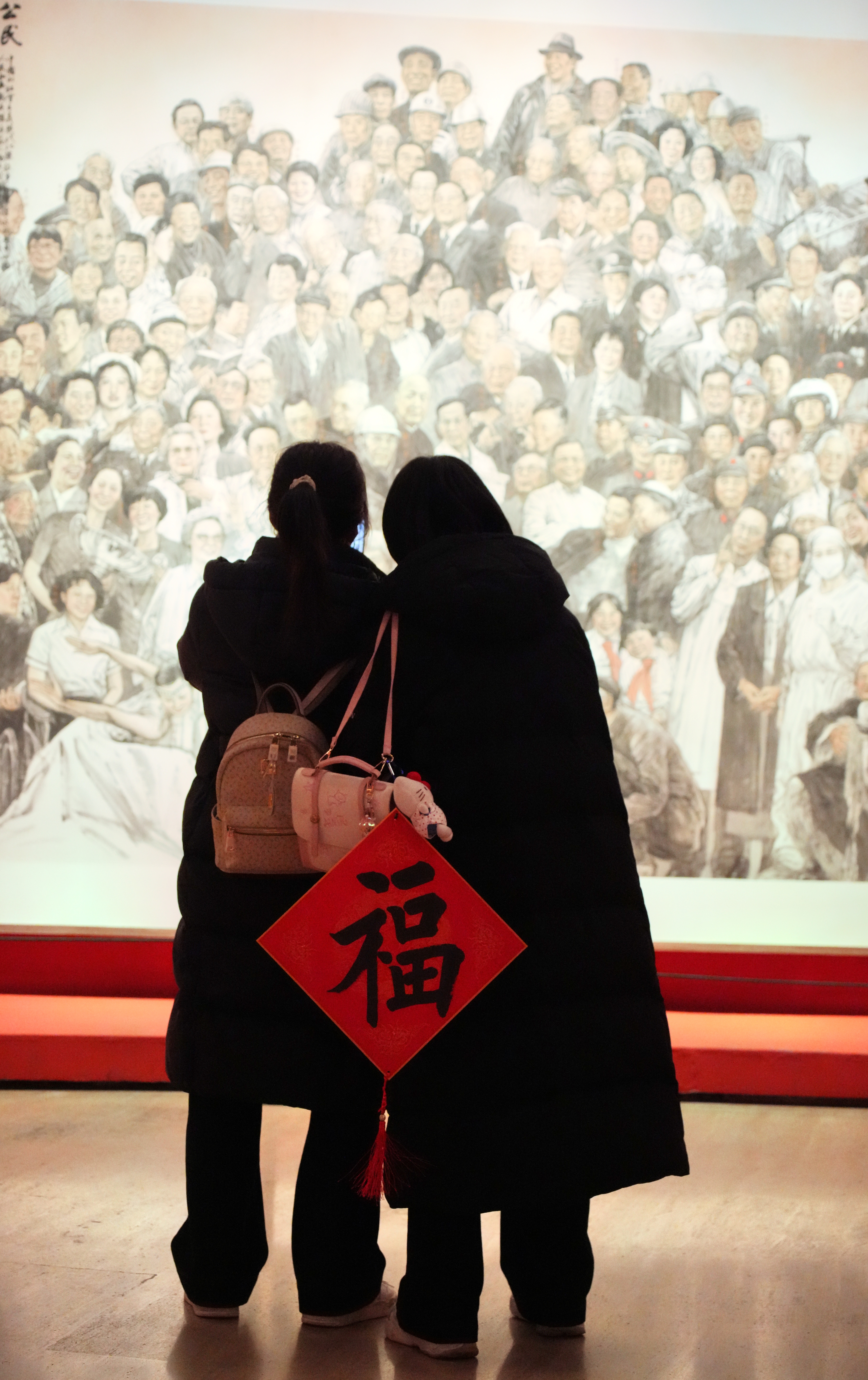 从南三环辗转赶来的79岁的孙先生,手捧“福”字笑意盈盈:“上了老年大学后,常来美术馆看展,每次都是美好的精神享受,让我收获满满。”82岁的武先生步伐矫健地走进大门,他说大年初一想讨个好彩头:“新的一年,希望自己自律、自信、自强,真正做到这几点,晚年才能活得舒坦。”