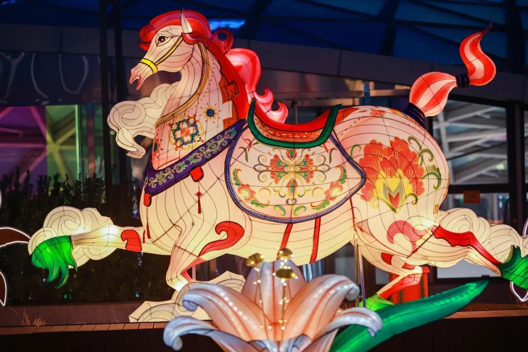 入夜,京西大悦城的新春灯彩节正式亮灯,灯转马驰新春灯彩节、云上仙阙极光秀、戴敦邦水浒主题文化活动、红运灯影游廊……整个商场化身不夜城,随手一拍皆是新春氛围感~