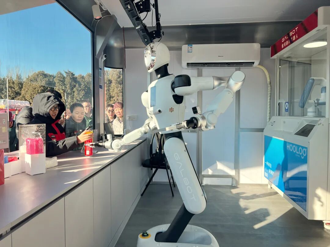 市民彭雨通过扫码点单,以9.9元购得一杯半价热美式。“机器人制作、机器人取餐,还能简单互动,孩子看得特别新鲜。”彭雨说,自己一早带孩子看完升旗仪式便赶来庙会,“每年初一逛地坛是家里的习俗,今年多了科技元素,既能感受老北京年俗,又能接触新事物,特别有意义。”除机器人零售店外,AR打卡、数字互动等体验点遍布园区,传统民俗与现代科技的碰撞让年味更添新趣。