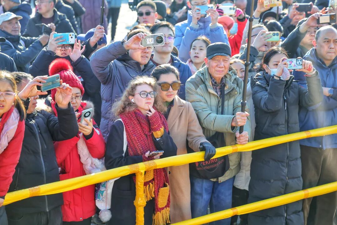 今天一早,地坛公园南门前锣鼓喧天,民乐悠扬。知名马头琴乐团“东方神骏”奏响《万马奔腾》,以激昂旋律点燃现场气氛,传递“马到成功”的新春祝福。身着喜庆年服的孩童献唱拜年歌谣,机器人与机器狗同台互动,传统年俗与现代科技相映成趣,赢得观众阵阵掌声。随着地坛公园朱红大门徐徐开启,市民喜气洋洋络绎入园,开启一场集逛、吃、玩、购于一体的新春游园之旅。
