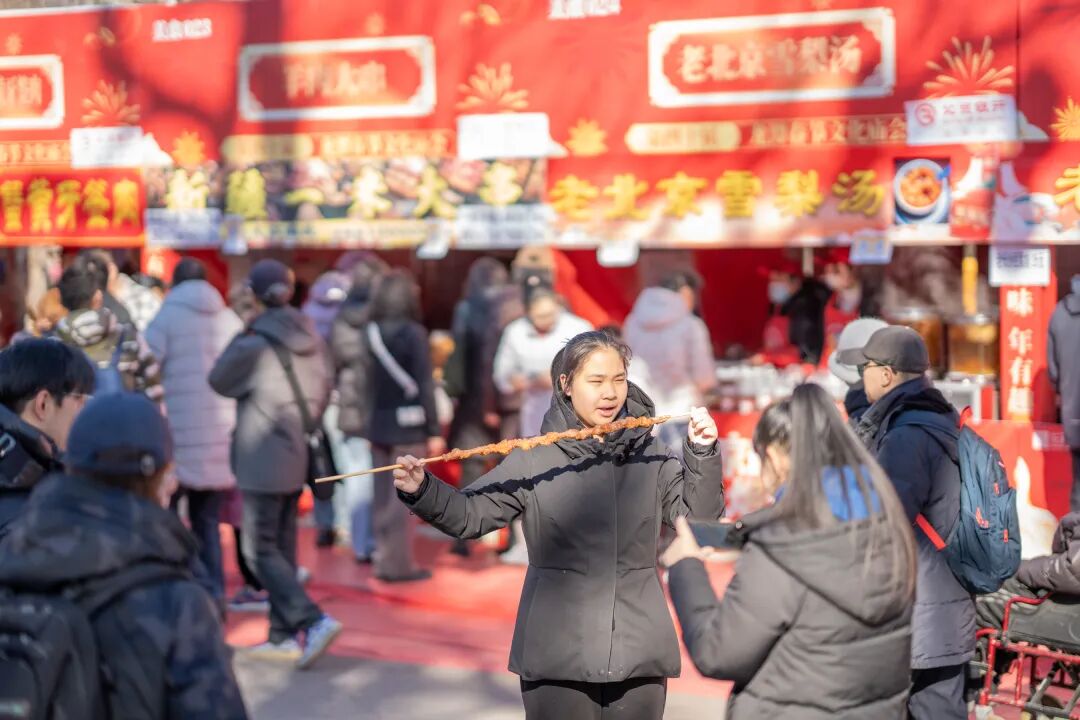 在庙会上,老人寻找的是儿时的回忆,杏仁茶的甜、炸灌肠的香,而“00后”和“10后”更多是在寻找庙会上推陈出新的新口味、新样式、新玩法。