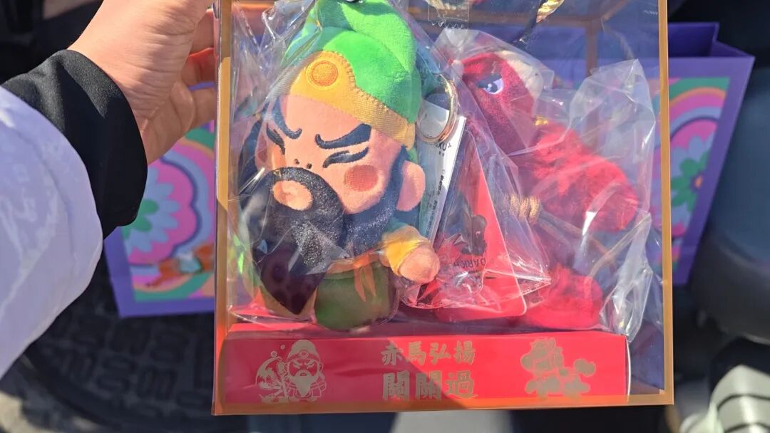 “这款赤马弘扬关关过是本次带到龙潭庙会的首发首秀产品。”人邮文创工作人员牟朗边介绍边演示,只见他拉住马脖子前面的金色铃铛,小马的尾巴就立刻转动起来;再拉动关公身上的机关,关公手中的青龙偃月刀就嗖嗖甩动起来,搭配着Q版形象,萌趣讨喜,快乐值拉满。这款产品还融合了关公“过五关斩六将”的典故,以“关关过”的谐音,传递冲破阻碍、万事顺遂的美好祈愿。