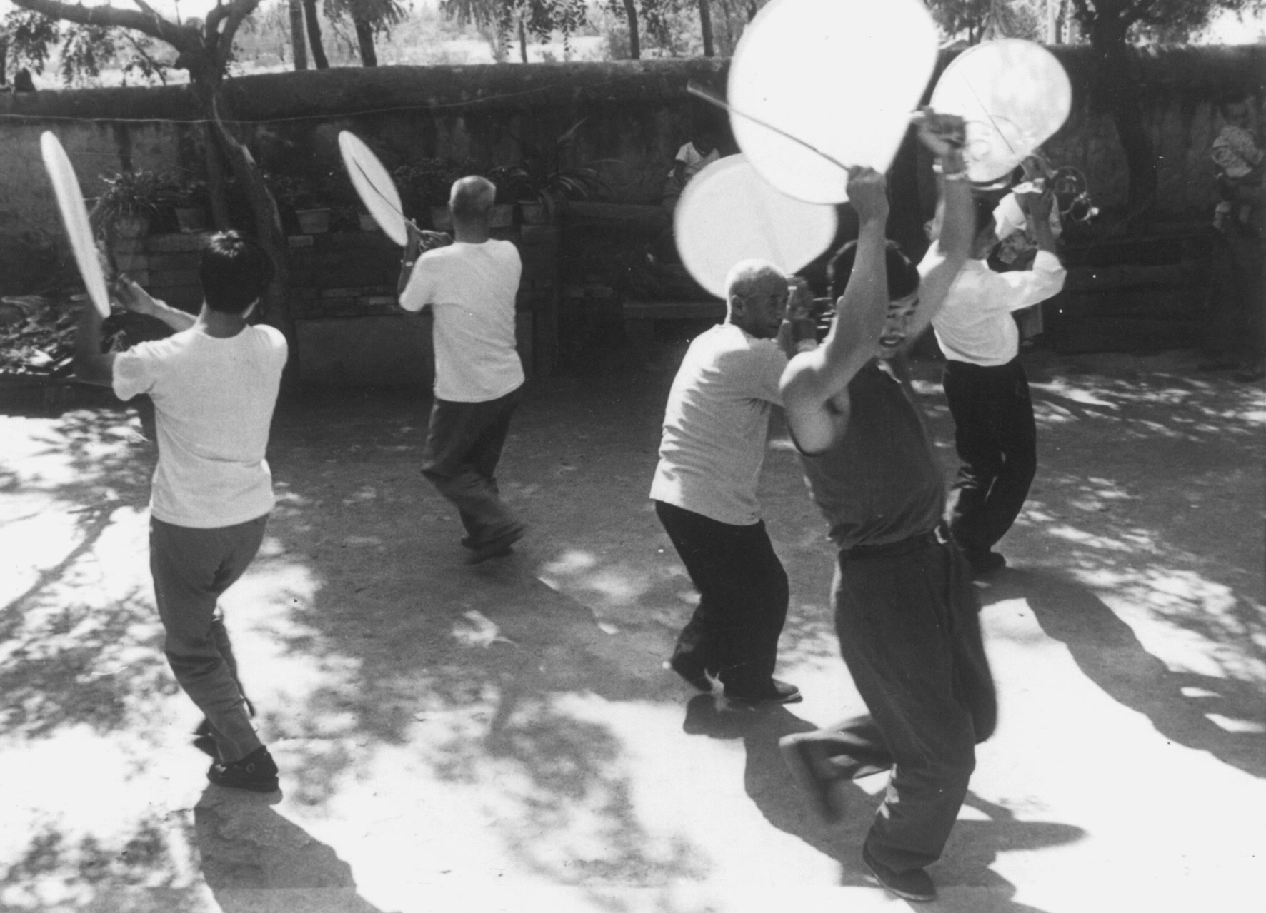 母女同上阵,也是今天太平鼓表演中的亮点,48岁的宋立女带着12岁的王楷茵表演的扑蝴蝶灵动飘逸,师傅陈文宝从用手如何掐竹篾,到手腕如何晃动及脚步的配合,耐心辅导。正因为一辈辈鼓手们的传帮带,才使京西这一民间舞蹈生生不息传承至今。