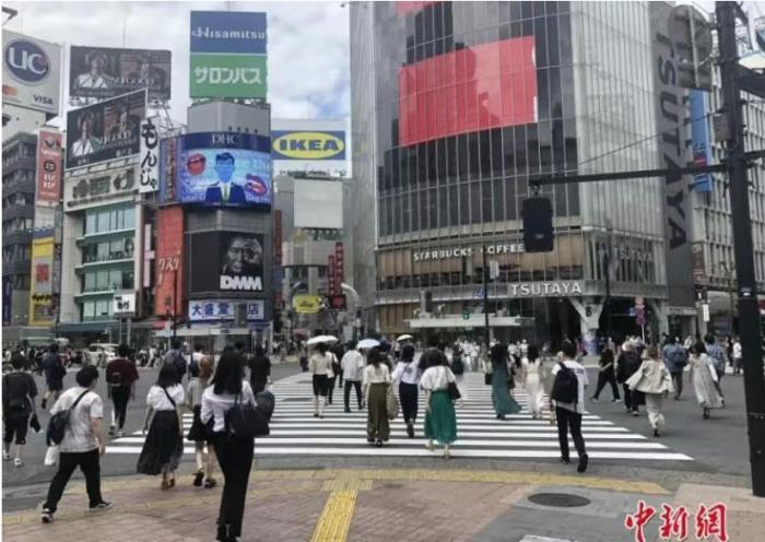 资料图:日本民众穿过涩谷车站前的交叉路口。中新社记者 吕少威 摄