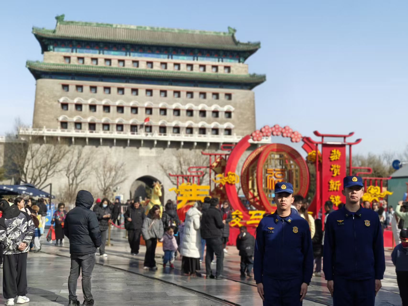 2月17日,大年初一,前门大街游人如织、商户有序营业,处处洋溢着喜庆祥和的节日氛围。春节期间,前门消防救援站采取“巡逻防控+精准排查”相结合的工作方式,每日派出执勤小组开展8次巡逻,累计执勤时长9小时。