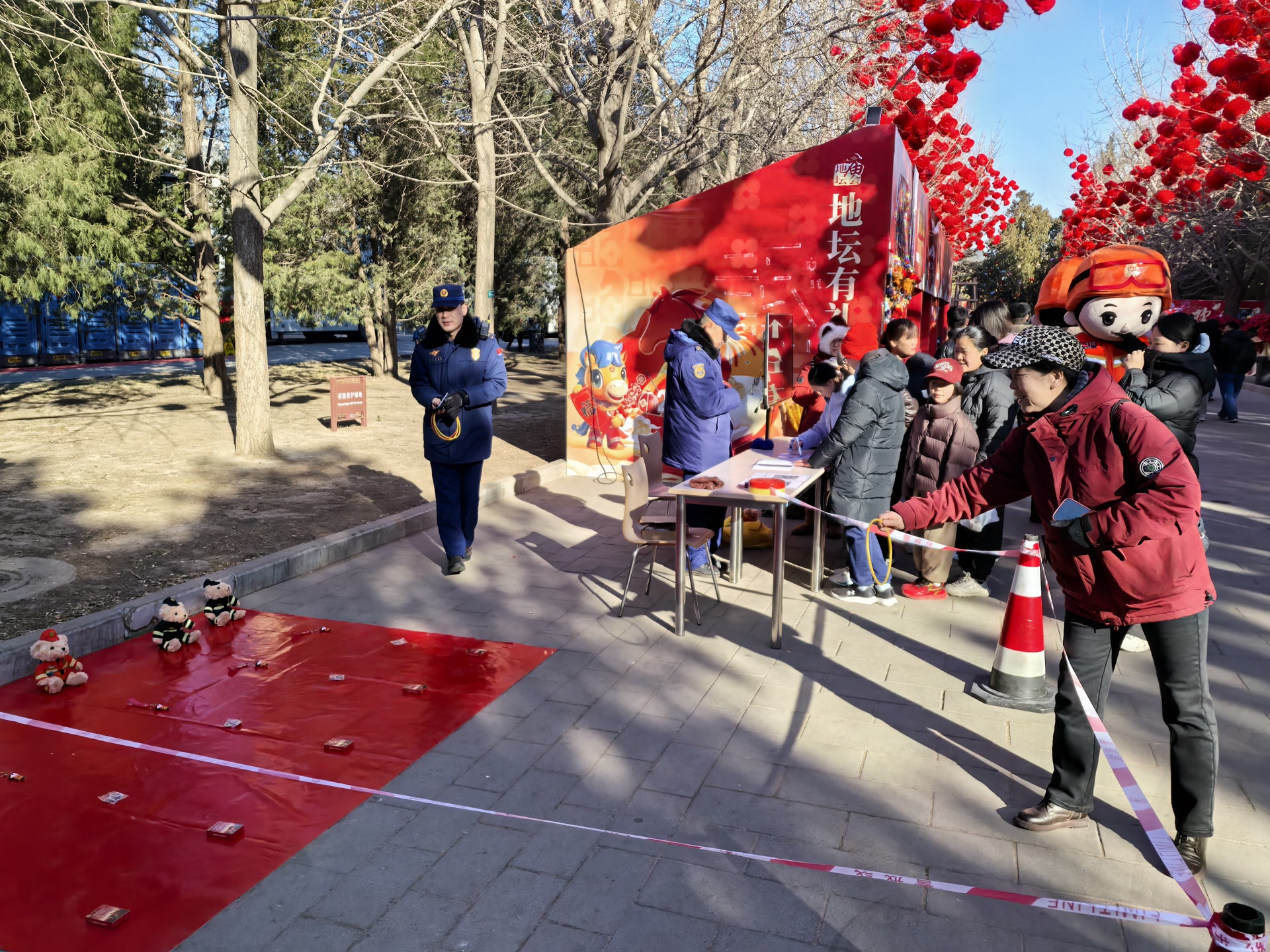 大年初一上午,地坛消防救援站的队员在加强巡逻值守,做好应急处置准备的同时,还在地坛庙会设置了消防宣传特色项目。