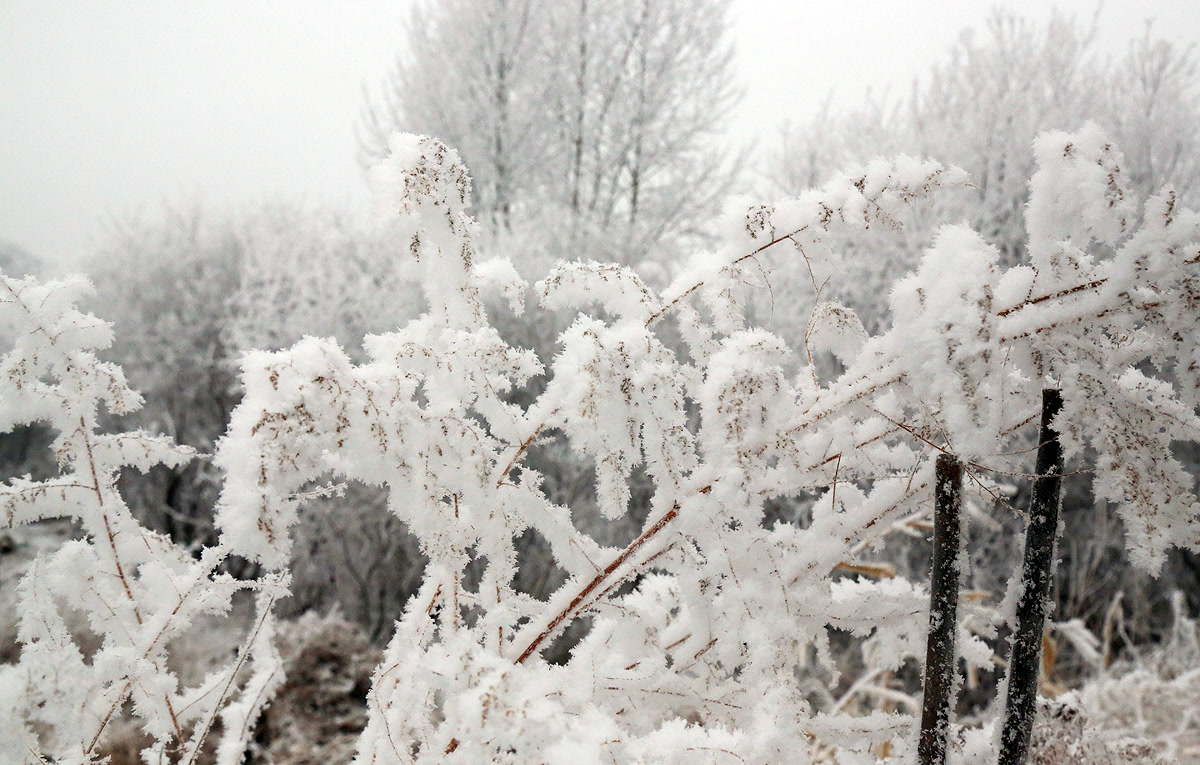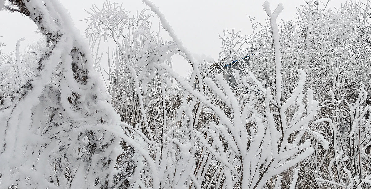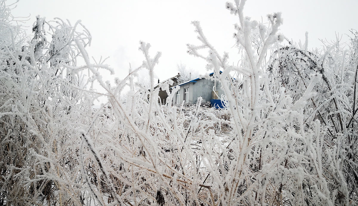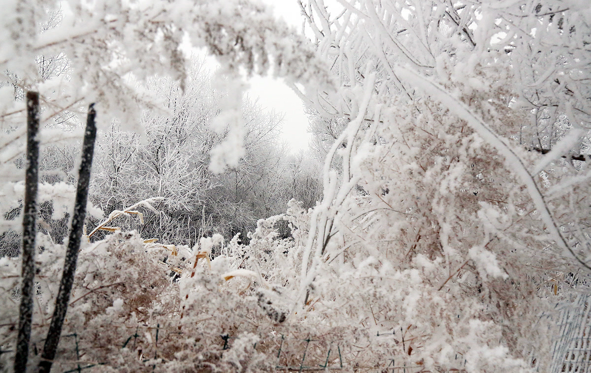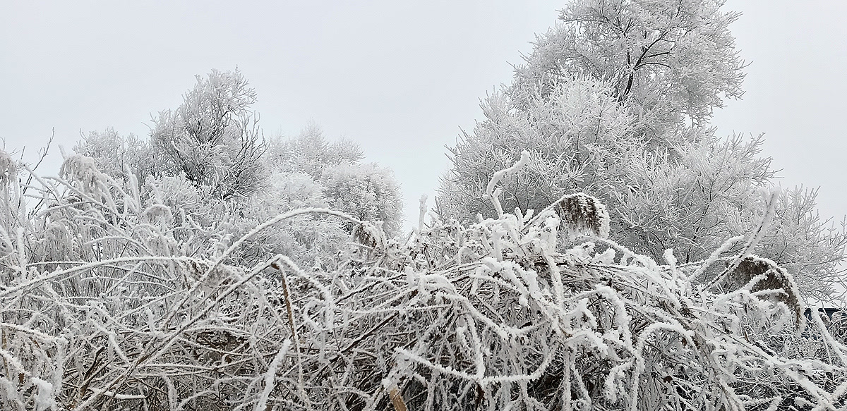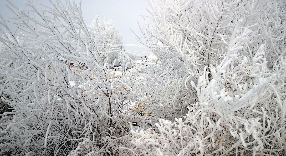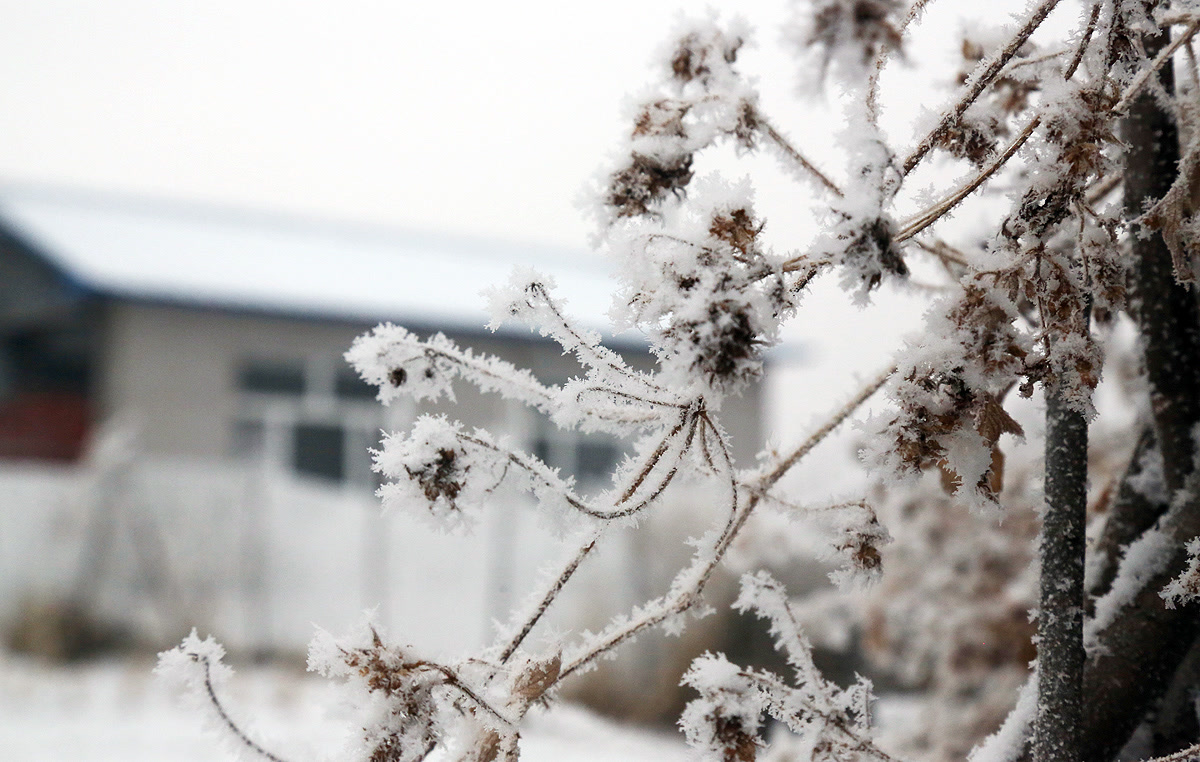 清晨时分,笔者在吉林省长春市九台区苇子沟街道庆阳村看到,整个村落仿佛被一层薄纱笼罩。随着晨雾散去,视线豁然开朗:村路两旁挺立的白杨树、老榆树,甚至农家小院里悬挂的红灯笼,都挂满了毛茸茸、亮晶晶的冰晶。树枝不堪重负微微低垂,风起时,细碎的冰晶随风飘落,在朝阳的映照下闪烁着钻石般的光芒,宛如置身童话世界。