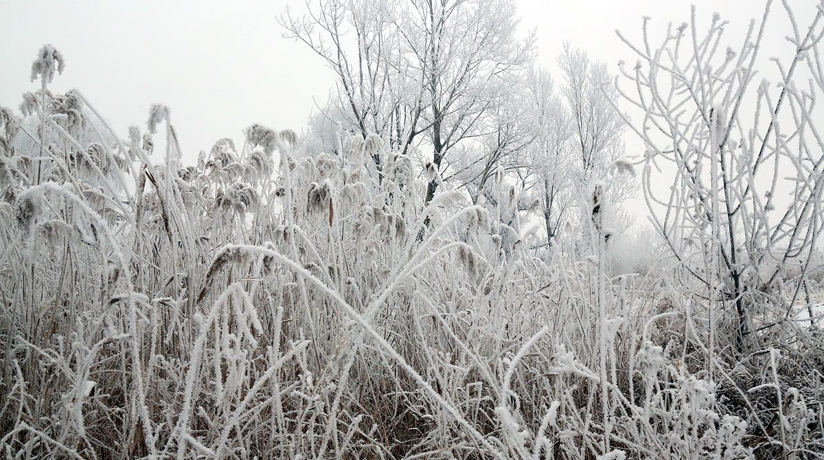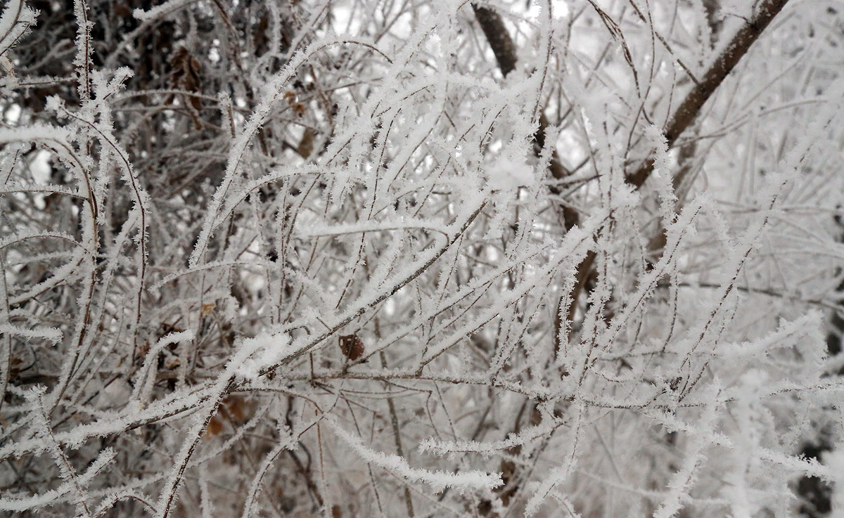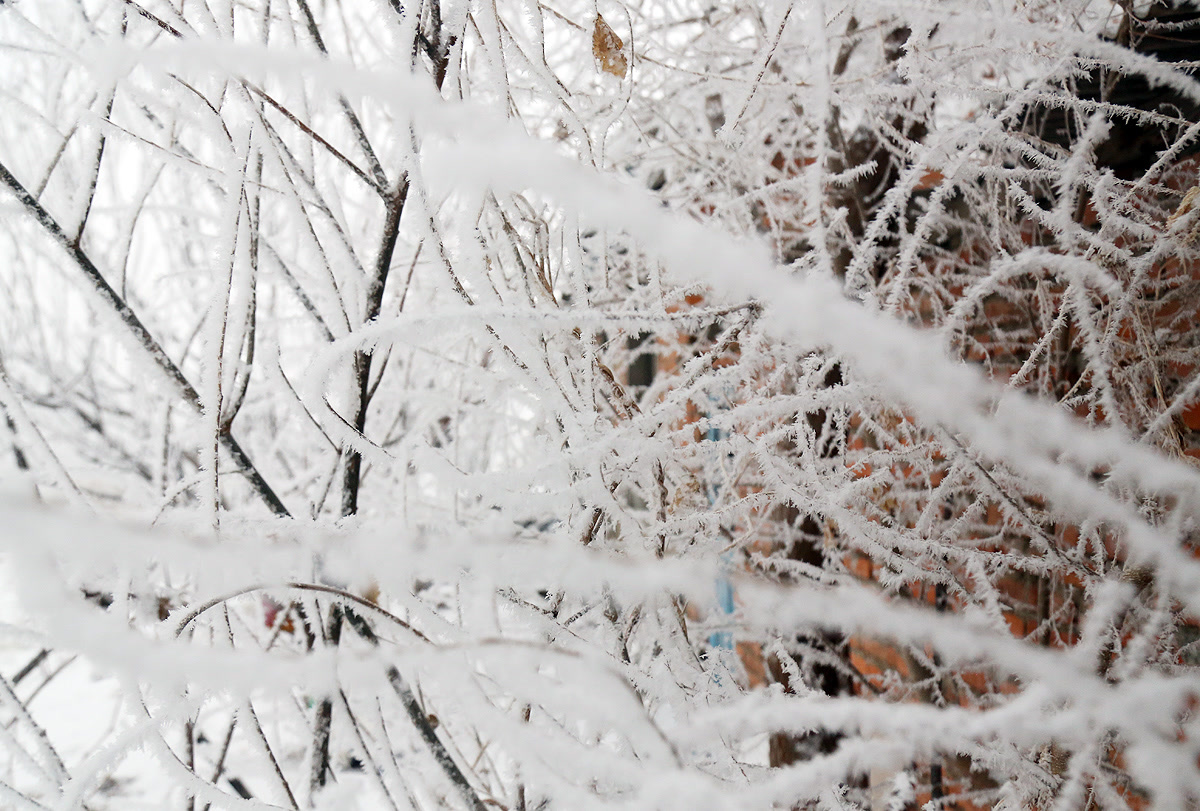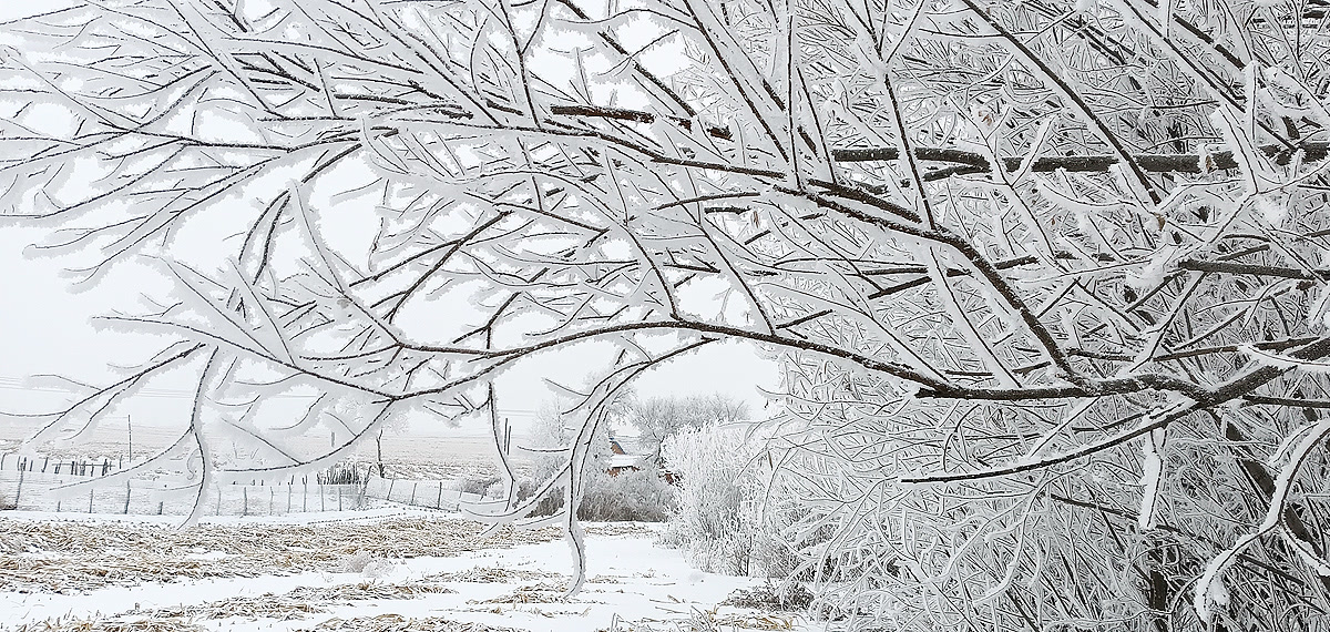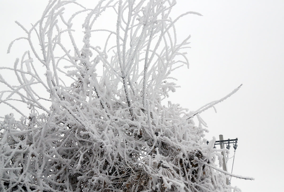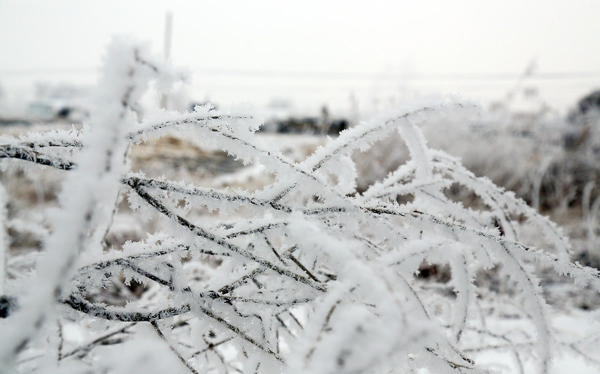 清晨时分,笔者在吉林省长春市九台区苇子沟街道庆阳村看到,整个村落仿佛被一层薄纱笼罩。随着晨雾散去,视线豁然开朗:村路两旁挺立的白杨树、老榆树,甚至农家小院里悬挂的红灯笼,都挂满了毛茸茸、亮晶晶的冰晶。树枝不堪重负微微低垂,风起时,细碎的冰晶随风飘落,在朝阳的映照下闪烁着钻石般的光芒,宛如置身童话世界。