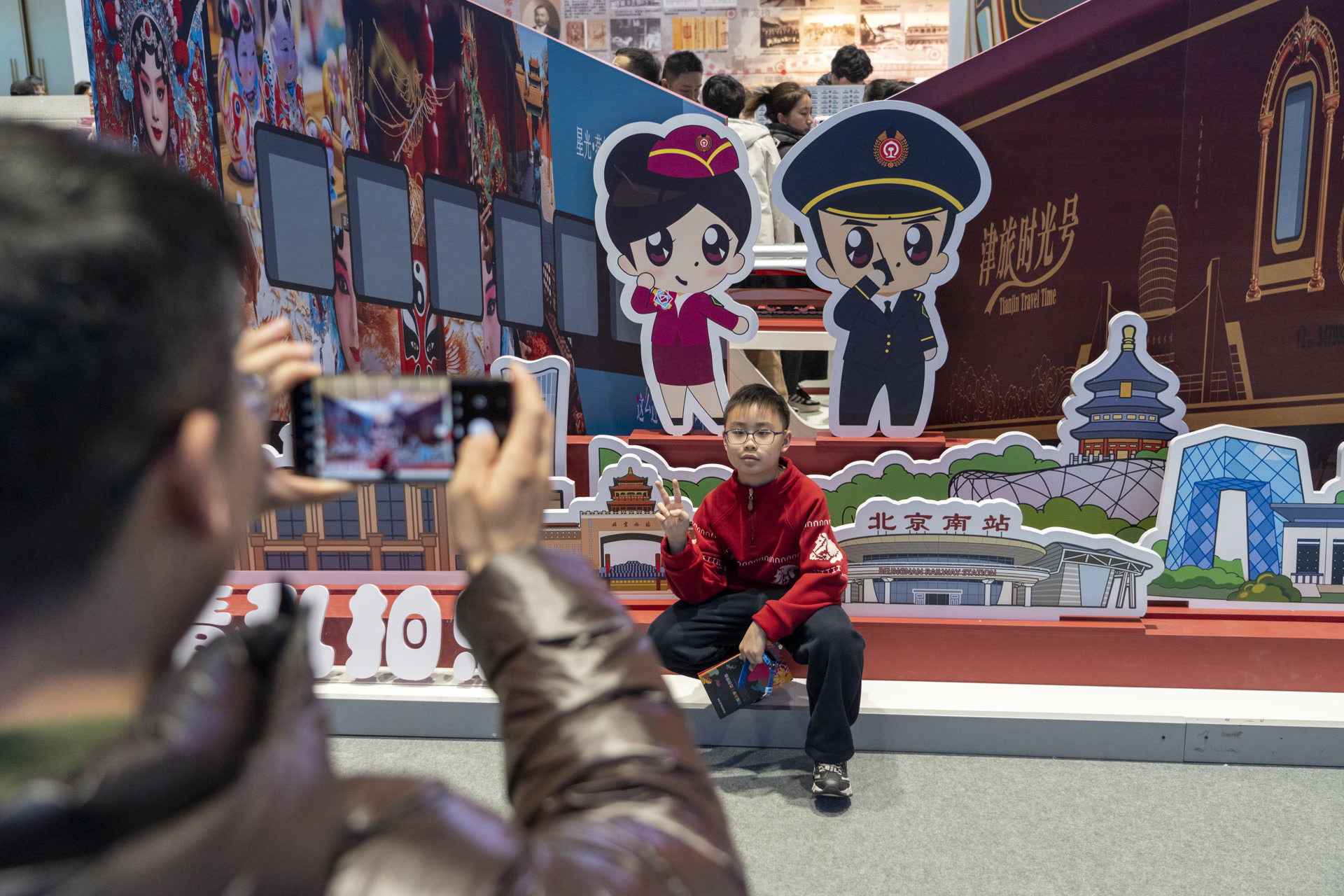 在展位的另一侧,一块精心设计的拍照背景板成为另一个游客聚集地。背景板上,“星光·燕赵号”“津旅时光号”特色旅游列车与几大铁路车站交相辉映。“逛庙会不仅能吃到糖葫芦,还能看到这么硬核的科技,这趟来得值。”特意从海淀赶来的陈先生带着儿子在展位前流连忘返。