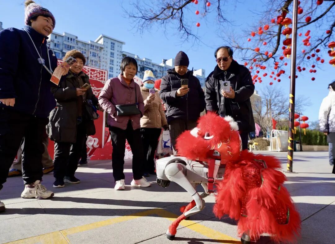 开幕式上,由4只机器狗演绎的醒狮表演,实现了传统民俗与前沿科技的创意碰撞。活动期间,互动机器人成为市民们追捧的“科技明星”,通过迎宾、巡游、合影、舞蹈等常态化互动,不仅提升了活动的趣味性与吸引力,更体现了活动主动运用新技术降低文化参与门槛,扩大服务覆盖面,使文化惠民更加智慧、亲切、可感。科技赋能与文化场景的有机结合,为传统节庆活动注入了现代活力,让文化服务更具时代质感与亲民温度。