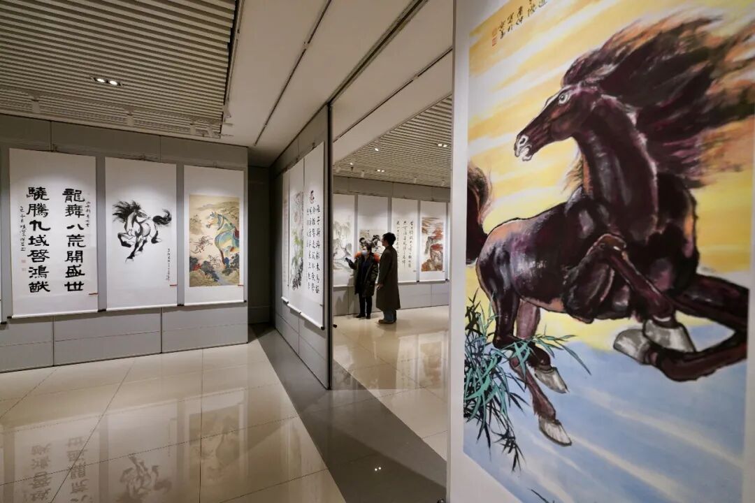 二层风尚美术馆举办“墨韵龙马”迎春艺术展,百余幅书画精品以笔墨丹青诠释传统生肖文化内涵。