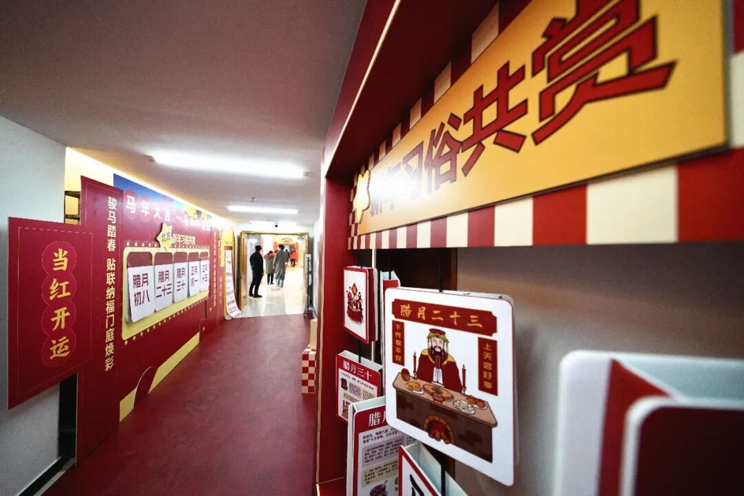 三层东侧走廊的南北过年习俗趣味墙,以生动有趣的形式普及传统年俗知识,在互动玩乐中深化公众对春节非物质文化遗产的认知与情感连接。