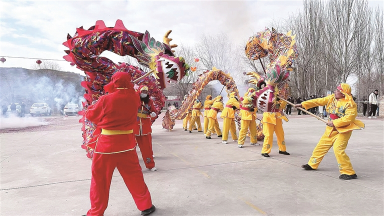 大年初二,田堡村村民闹社火舞长龙。光明日报记者 闫磊摄/光明图片