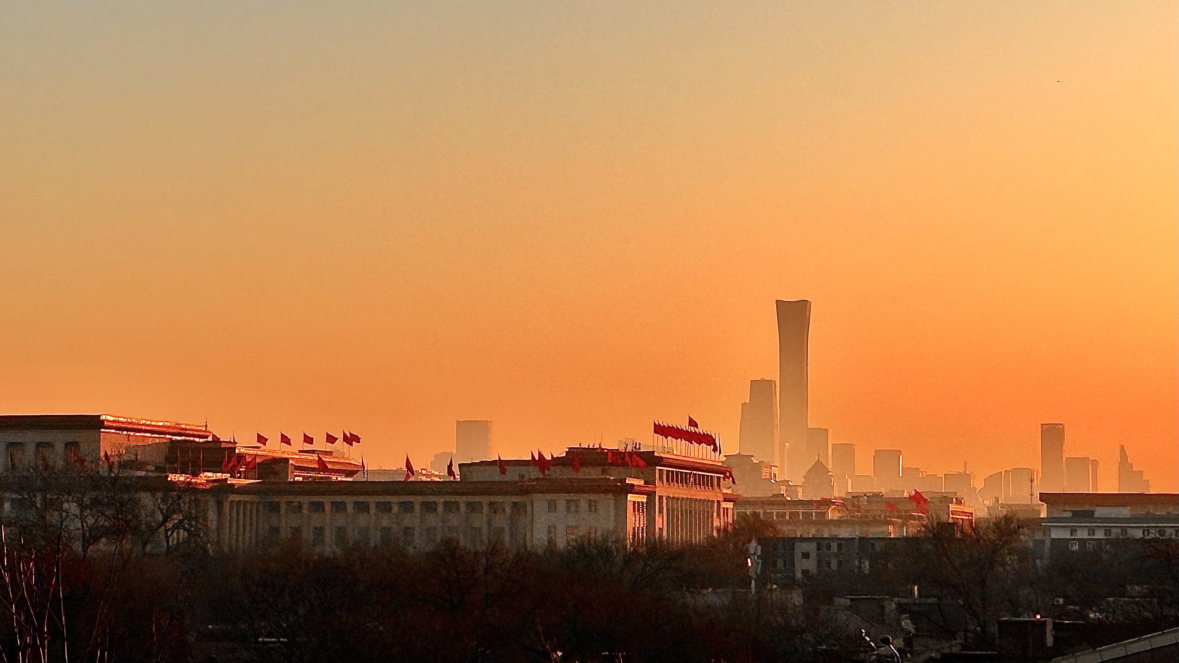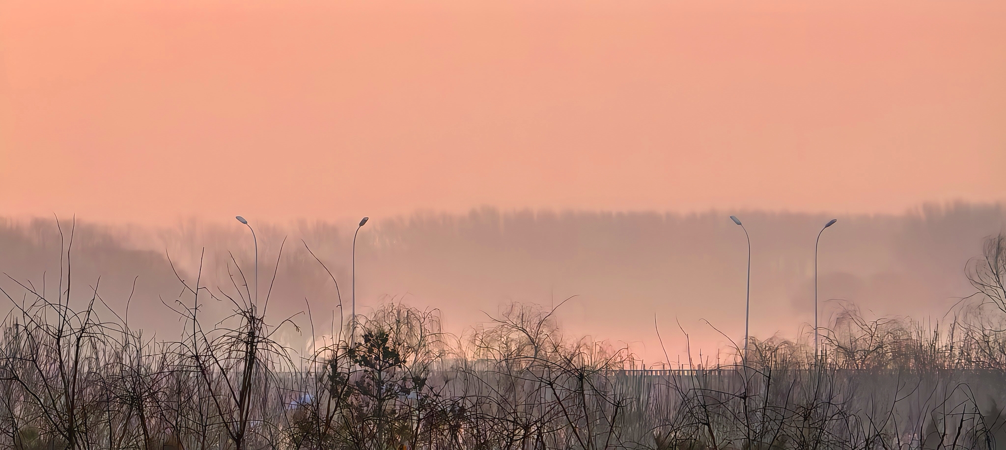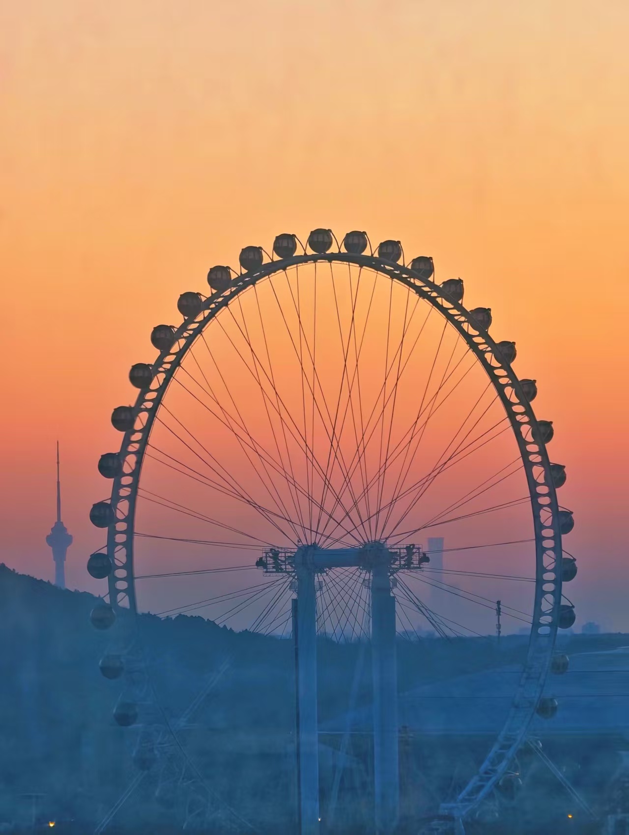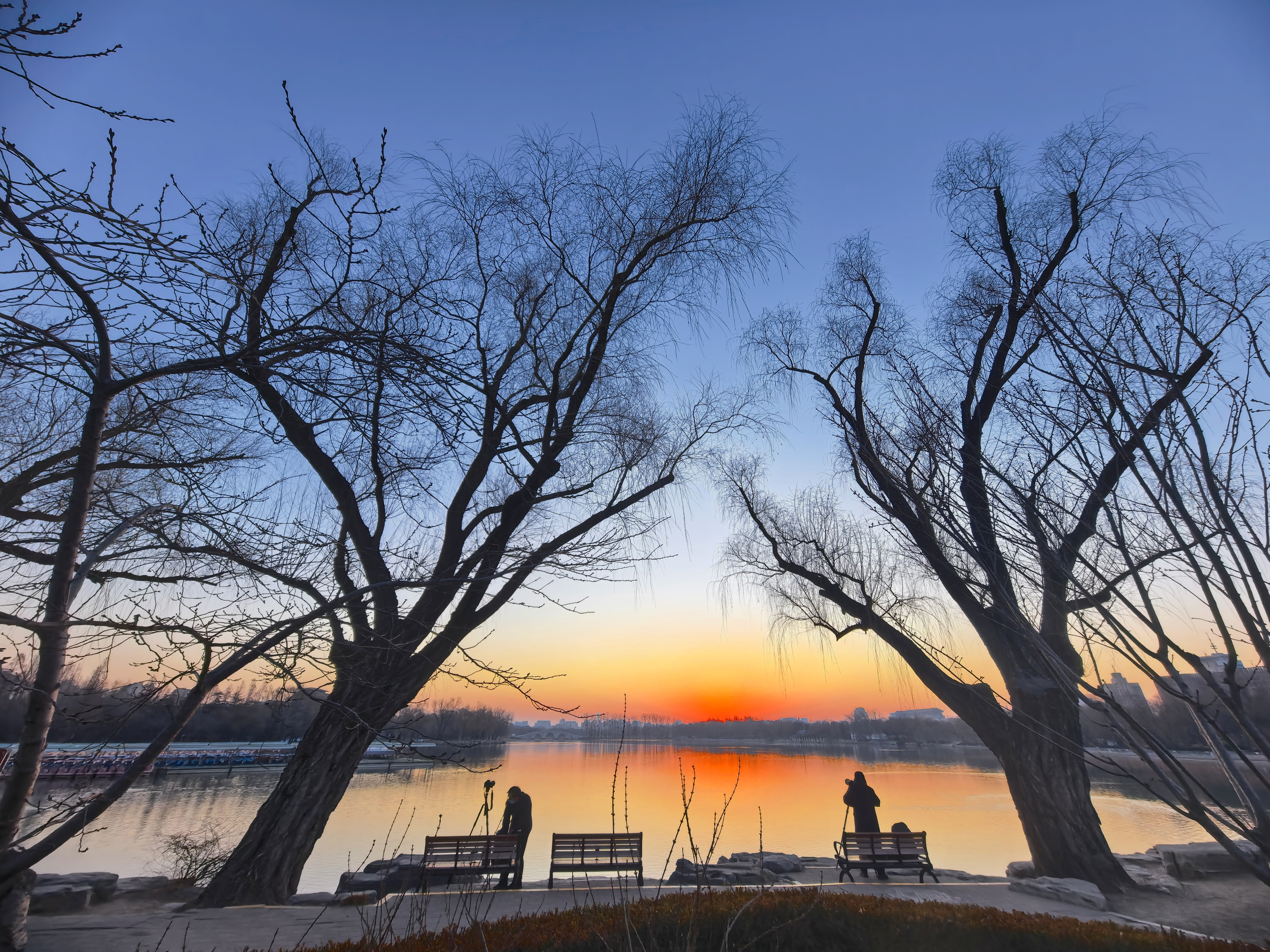 大年初三,一城朝霞暖,鹊鸣迎福来,欢跑映霞光。