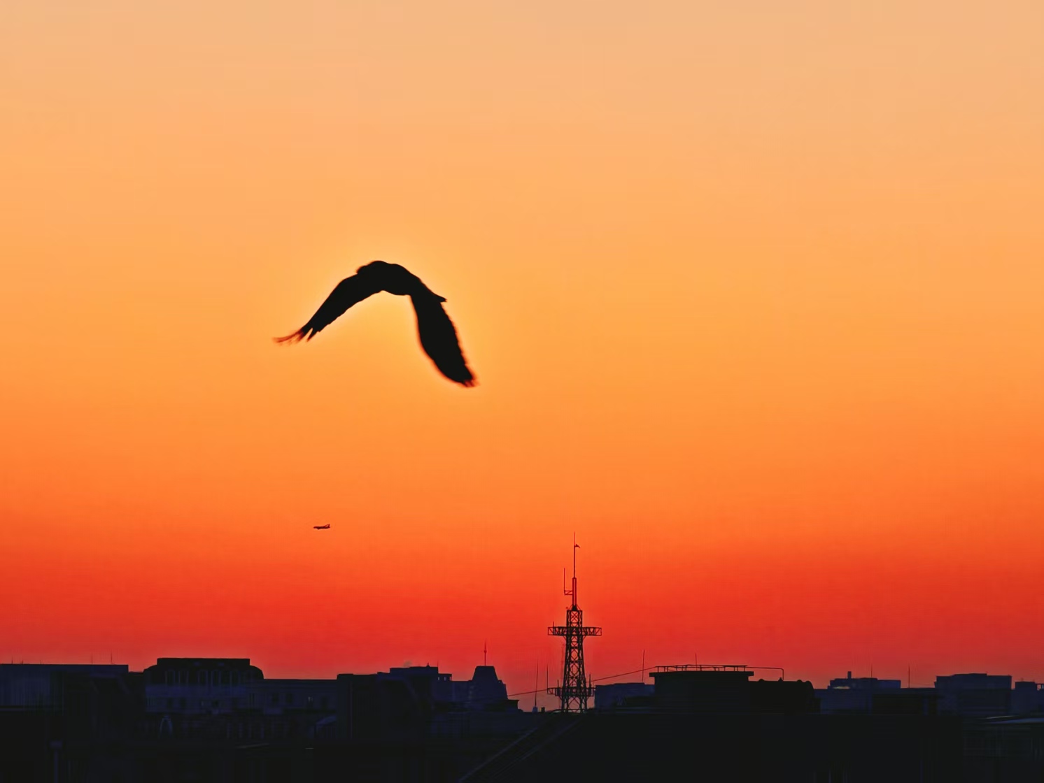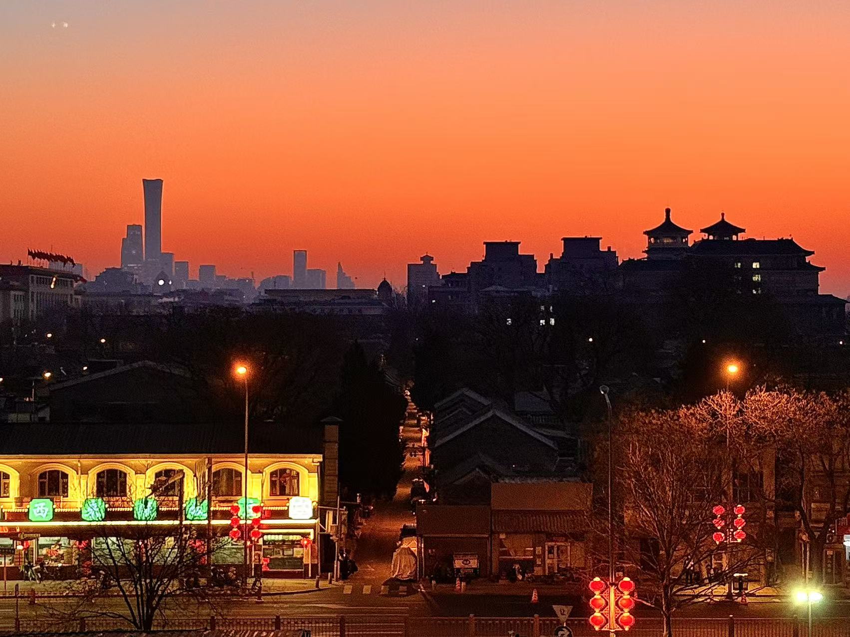 大年初三,一城朝霞暖,鹊鸣迎福来,欢跑映霞光