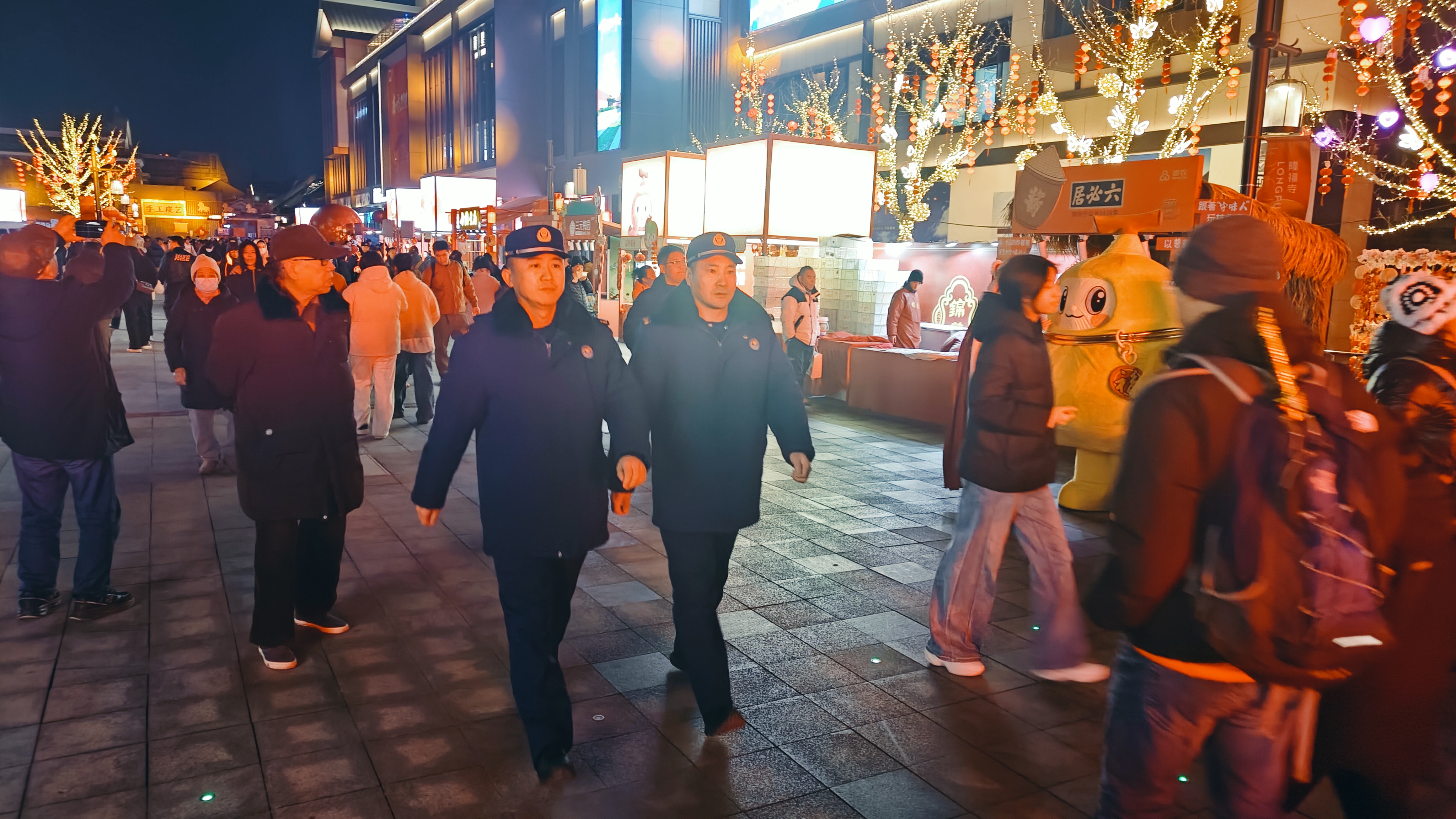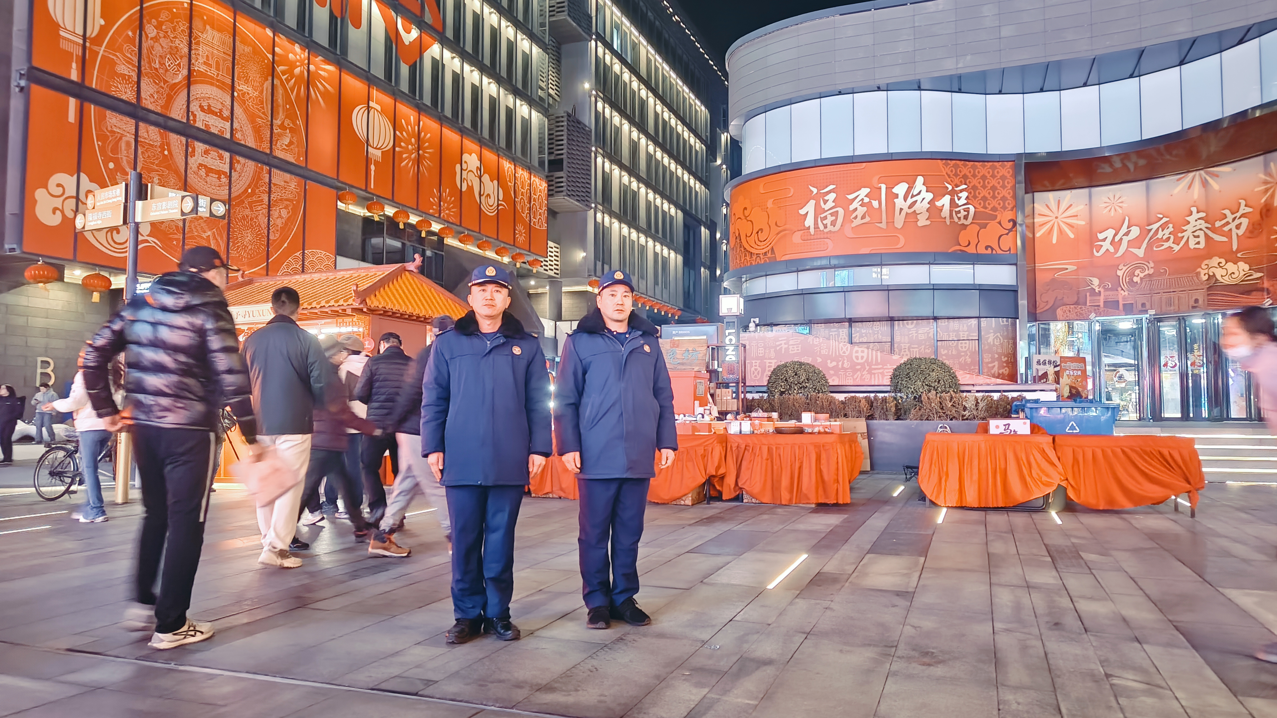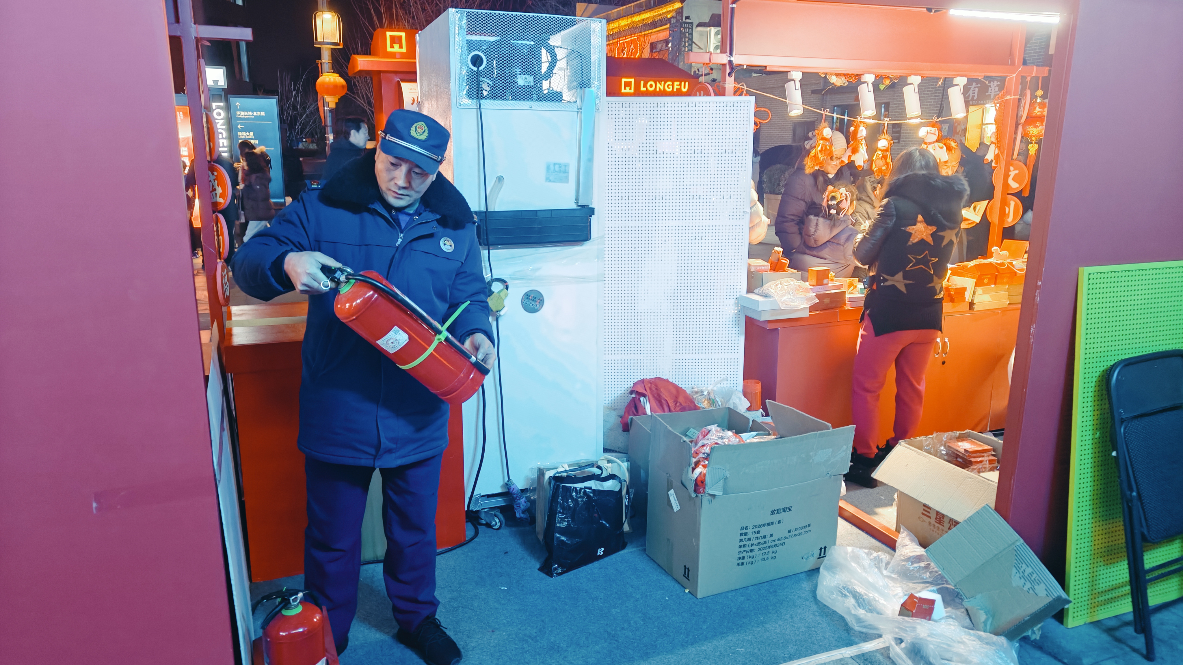 节日期间的隆福寺,古建院落与时尚商铺交错,人流密集,餐饮场所集中,用电用气量激增,消防安全问题不容小觑。为此,景山小型消防站早已制定了一套详尽的春节保障方案。