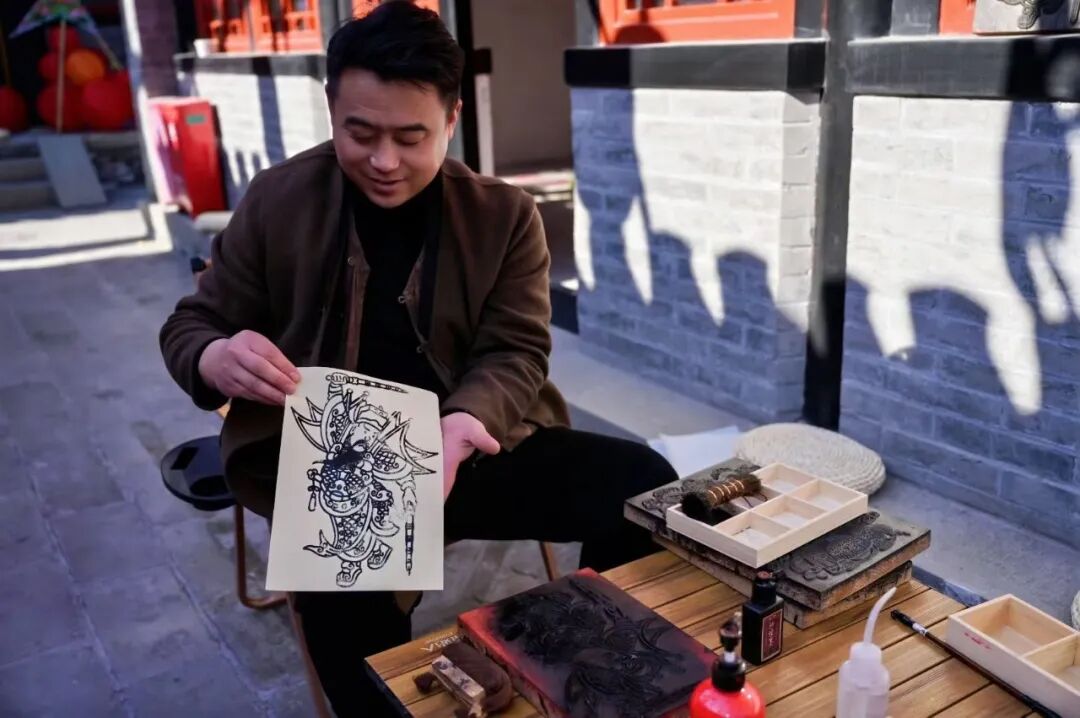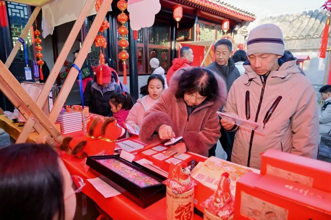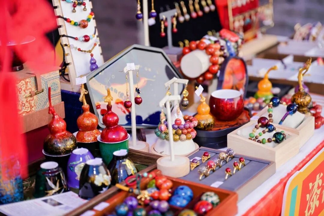 青云贰拾叁艺术中心户外庭院作为会馆大开箱活动的启动现场,以“东方美学与现代潮流的交汇”为特色,现场展出满族伊尔根觉罗剪纸、云南甲马版画、西秦刺绣等融合传统技艺与现代设计的新锐之作,并涵盖淮四九宴·老饭骨京味年货、护国寺小吃与老北京茶汤等京味美食,为市民及游客朋友展现从指尖美学到地道烟火的多样新春非遗魅力。