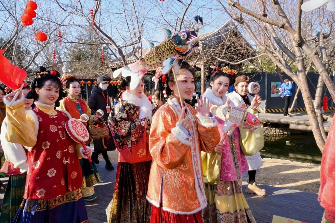 活动期间,前门东区三里河沿岸化身为流动的舞台。初一至初七的10:30和15:30,以5米长的安徽汪满田巨型鱼灯为焦点的国风巡游队伍沿三里河展演。此外,初一、初二的10:30和15:30,以及初一、初五的11:15,来自河北的武鼓“小孩哥”、民俗高跷艺人与国家级非遗“白纸坊太狮”带来精彩献艺。活动期间每天14:00至14:30,颜料会馆内还会上演相声、皮影戏、变脸等免费惠民演出,营造浓厚的新春氛围。