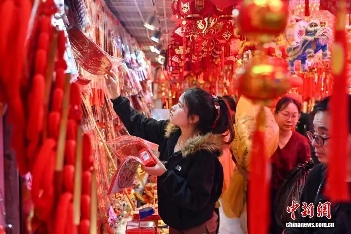 资料图:市民在广州一德路选购新春饰品。中新社记者 陈骥旻 摄