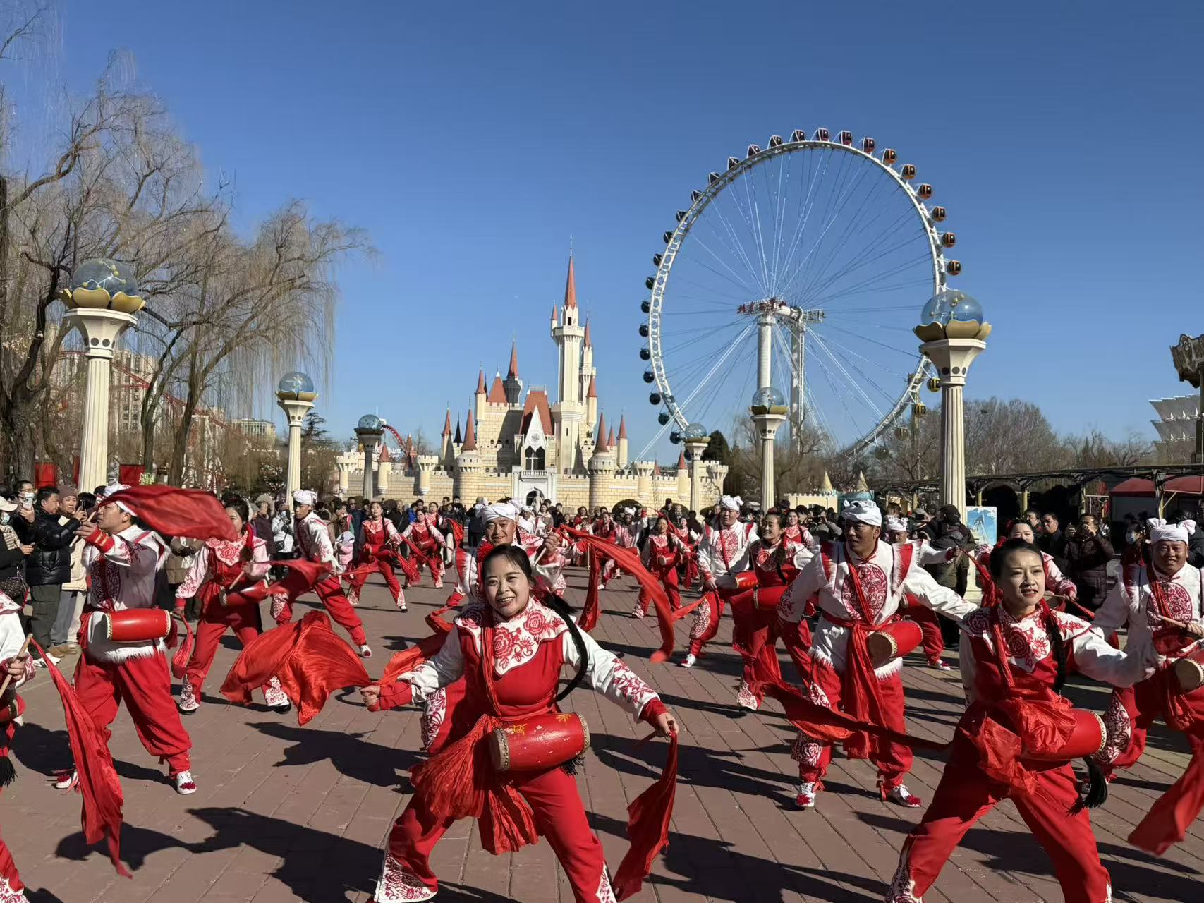 日游园,鼓动京西:日间活动在铿锵有力的非遗安塞腰鼓中率先点燃激情。鼓手们身姿矫健,鼓声震天,以刚劲豪迈的舞姿展现了黄土高原的淳朴民俗,引得现场游客纷纷驻足,掌声与喝彩声此起彼伏。