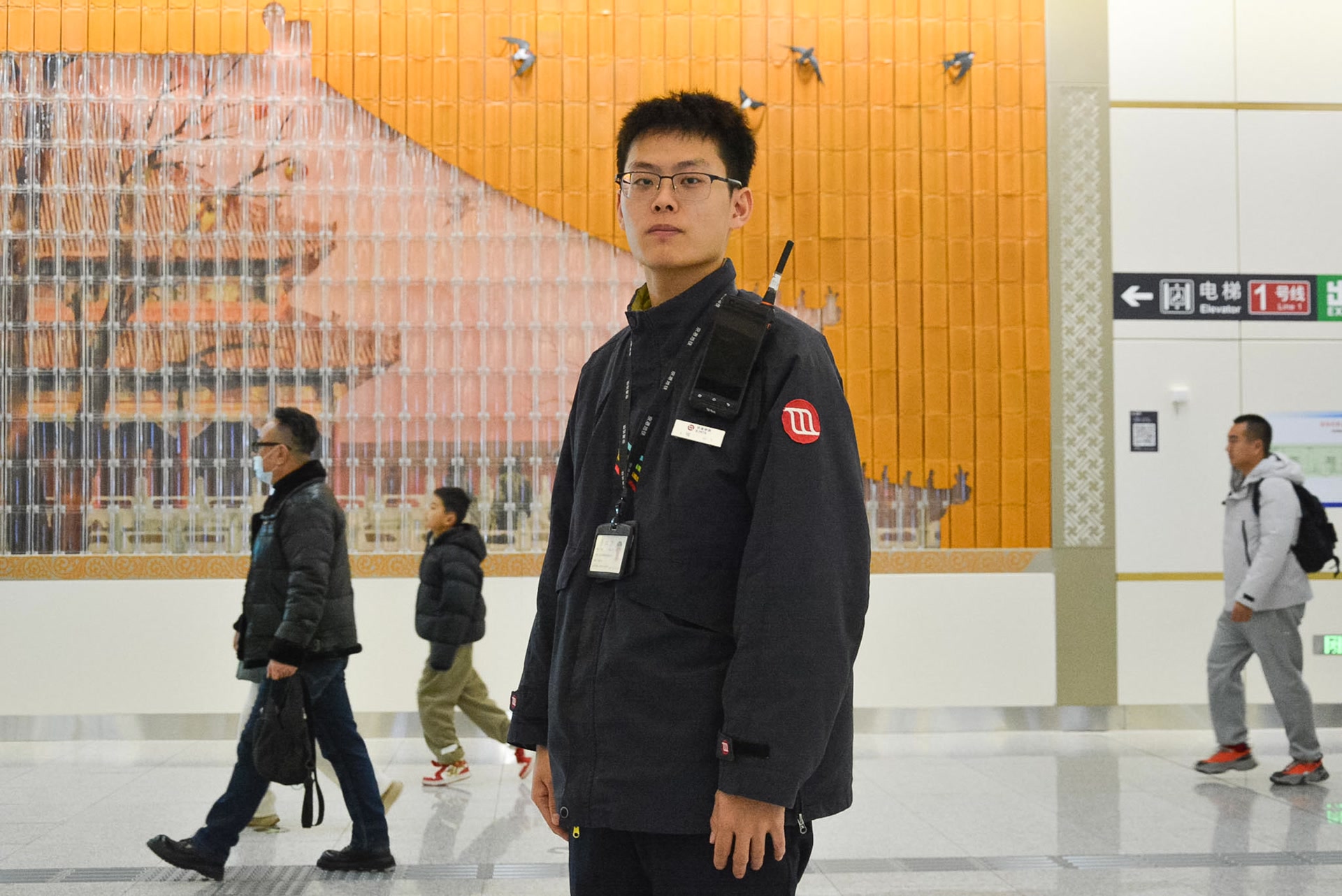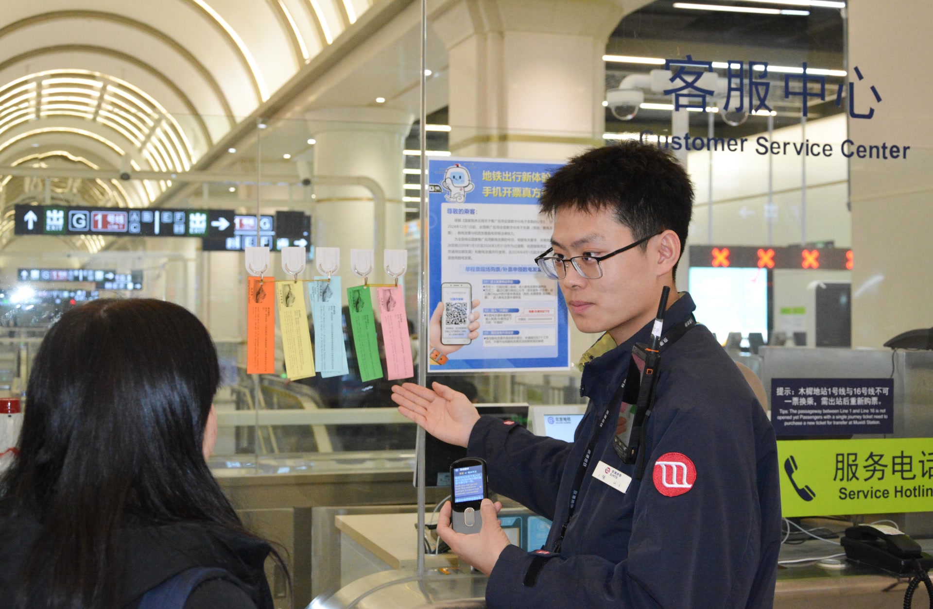 “有外籍乘客需要帮助,请支援。”别在胸前的对讲机里,传来地铁安检员的求助声。当面露难色的外籍乘客被引导至客服中心,地铁17号线永安里站的站务员丁瑞立马将问候切换至“英语频道”:“您好,请问需要什么帮助?”紧接着,他熟练地从兜里掏出一台翻译机举到乘客面前,示意其对着机器说话。屏幕上的中英文不断转换:原来,这位乘客要去大兴机场赶飞机。